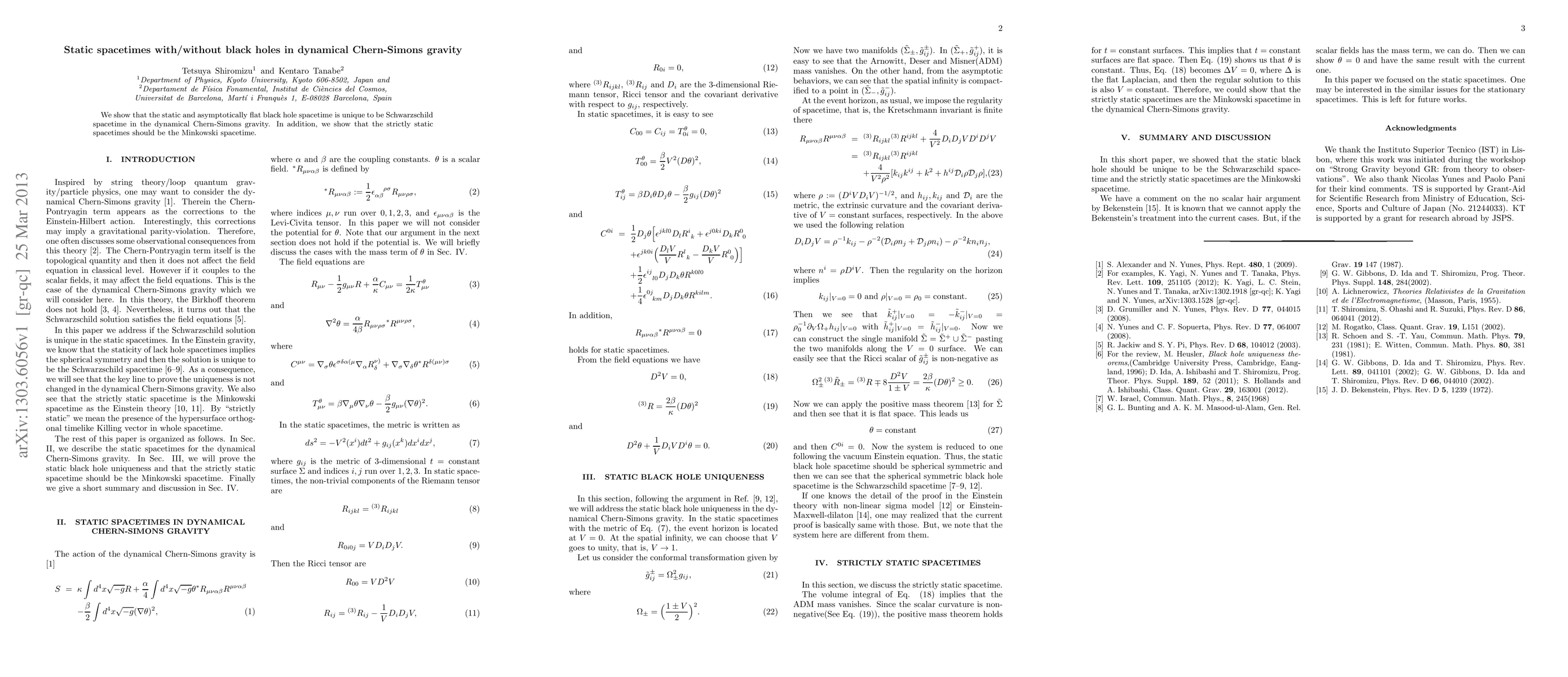 Summary: This paper demonstrates that in dynamical Chern-Simons gravity, the only static and asymptotically flat black hole spacetime is Schwarzschild, while strictly static spacetimes must be Minkowski.