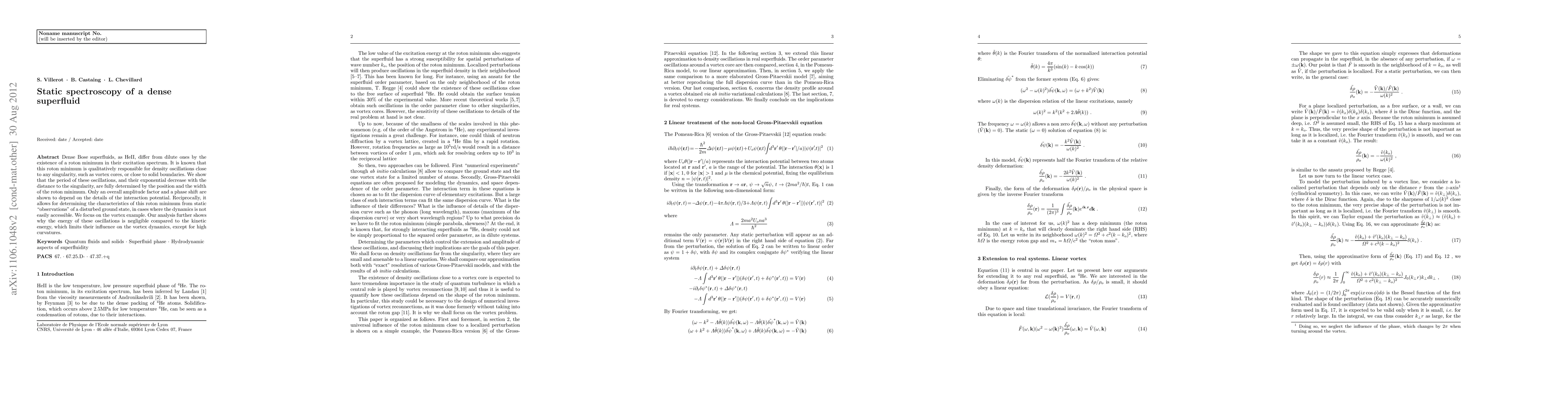 Dense Bose superfluids, as HeII, differ from dilute ones by the existence of a roton minimum in their excitation spectrum. It is known that this roton minimum is qualitatively responsible for density oscillations close to any singularity, such as vortex cores, or close to solid boundaries. We show that the period of these oscillations, and their exponential decrease with the distance to the singularity, are fully determined by the position and the width of the roton minimum. Only an overall amplitude factor and a phase shift are shown to depend on the details of the interaction potential. Reciprocally, it allows for determining the characteristics of this roton minimum from static "observations" of a disturbed ground state, in cases where the dynamics is not easily accessible. We focus on the vortex example. Our analysis further shows why the energy of these oscillations is negligible compared to the kinetic energy, which limits their influence on the vortex dynamics, except for high curvatures.