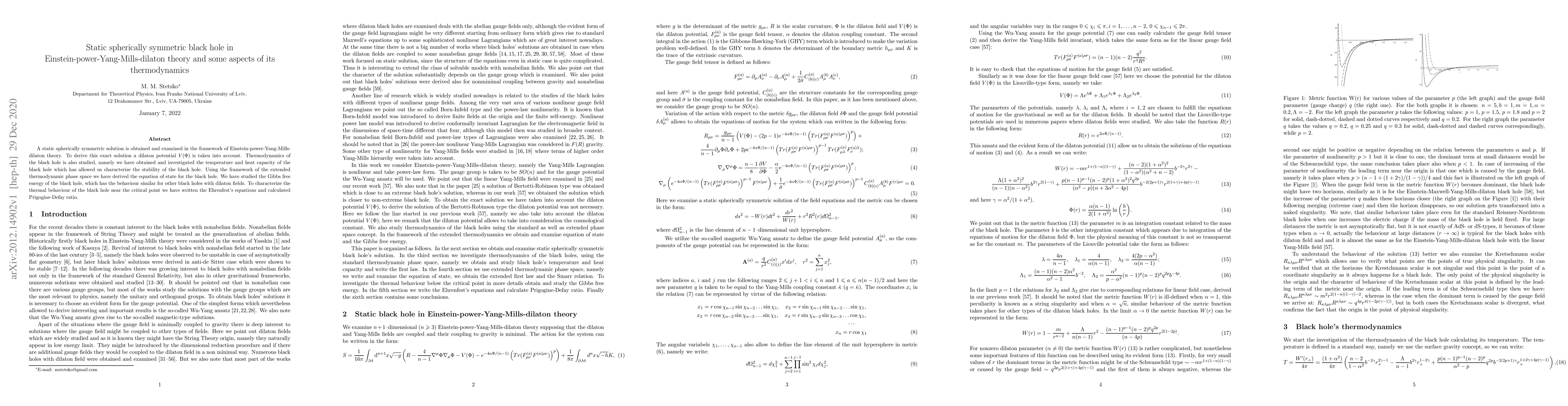 A static spherically symmetric solution is obtained and examined in the framework of Einstein-power-Yang-Mills-dilaton theory. To derive this exact solution a dilaton potential $V(\Phi)$ is taken into account. Thermodynamics of the black hole is also studied, namely we have obtained and investigated the temperature and heat capacity of the black hole which has allowed us characterize the stability of the black hole. Using the framework of the extended thermodynamic phase space we have derived the equation of state for the black hole. We have studied the Gibbs free energy of the black hole, which has the behaviour similar for other black holes with dilaton fields. To characterize the thermal behaviour of the black hole near the critical point we have written the Ehrenfest's equations and calculated Prigogine-Defay ratio.