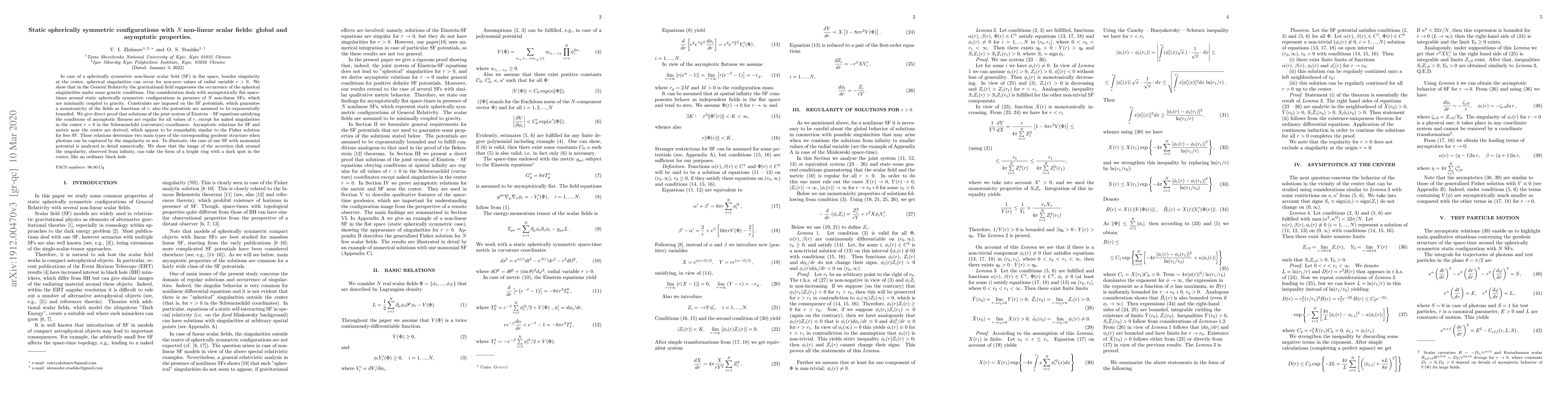 Research explores spherically symmetric configurations with non-linear scalar fields in flat space, finding that gravitational field suppression prevents spherical singularities under certain conditions; solutions near the center resemble those of ordinary black holes.