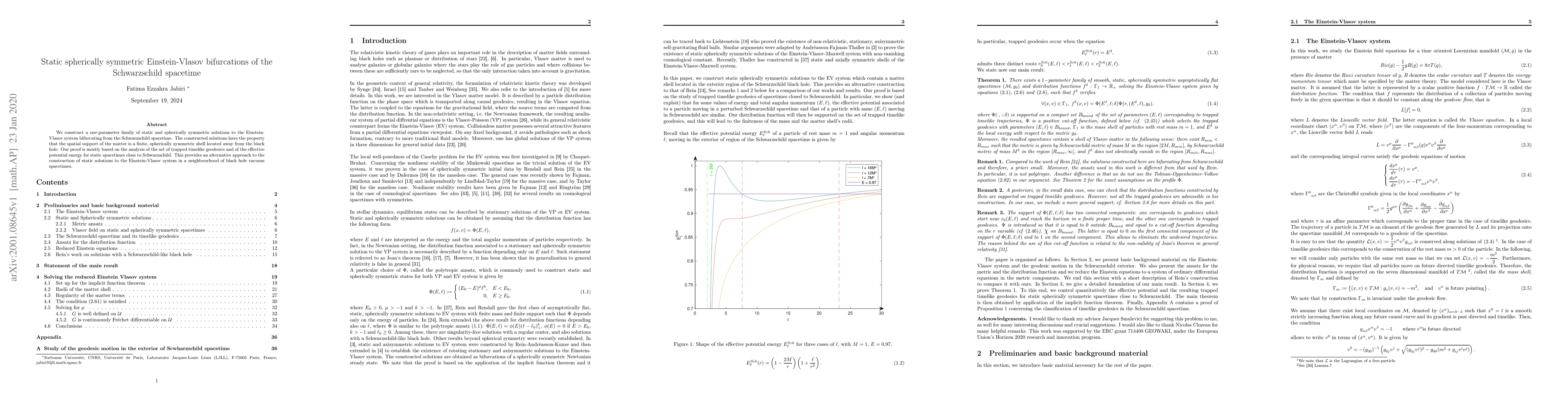 This paper constructs a family of static, spherically symmetric solutions to the Einstein-Vlasov system that bifurcate from the Schwarzschild spacetime, featuring a finite, spherically symmetric shell of matter. The authors achieve this through an analysis of trapped timelike geodesics and effective potential energy, providing an alternative method for constructing such solutions near black hole vacuum spacetimes.