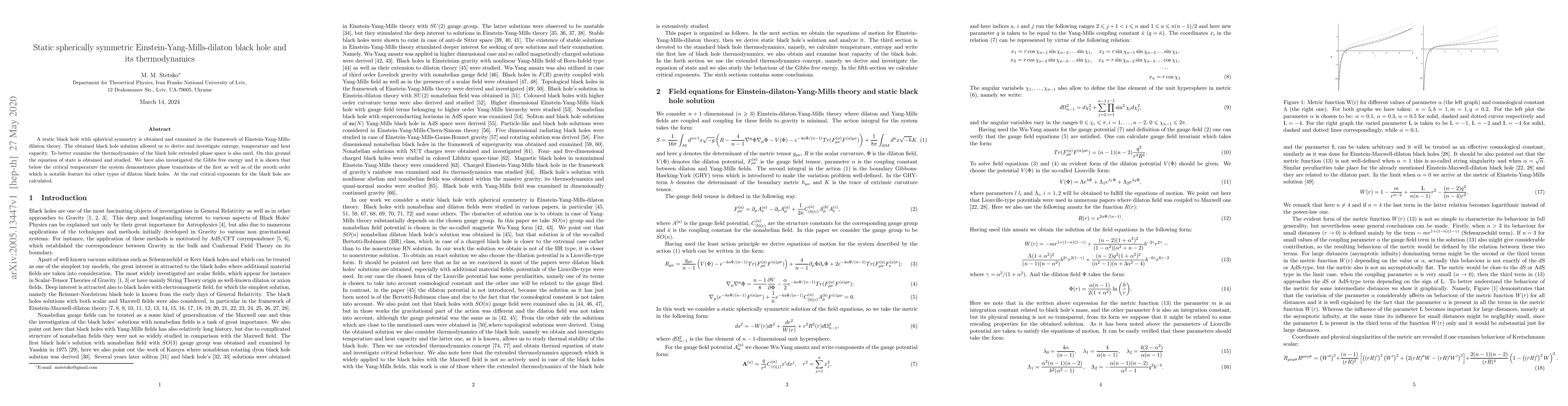 This paper presents a static spherically symmetric black hole solution in Einstein-Yang-Mills-dilaton theory and examines its thermodynamic properties, including entropy, temperature, and heat capacity. It also investigates phase transitions and critical exponents in the extended phase space framework.