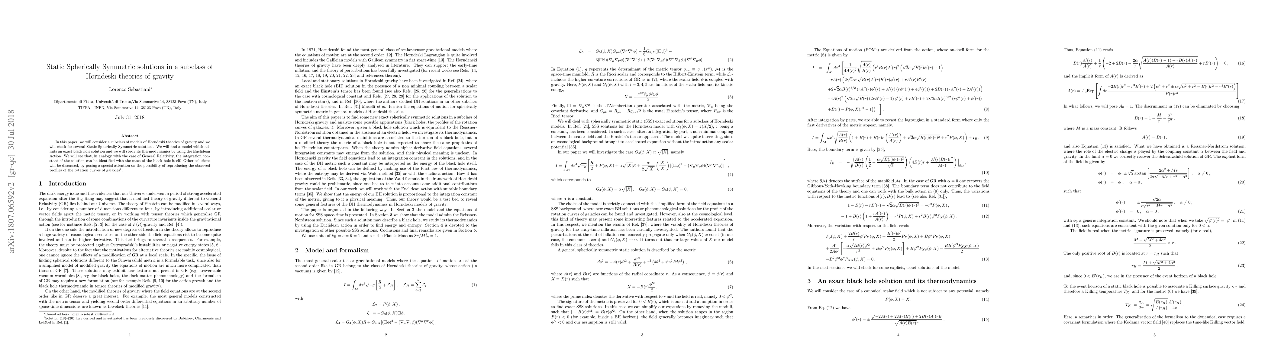 This research identifies a Horndeski gravity subclass with a static, spherically symmetric black hole solution, studied via Euclidean Action. It shows mass-identification and discusses solutions' potential for galaxy rotation curve profiles.