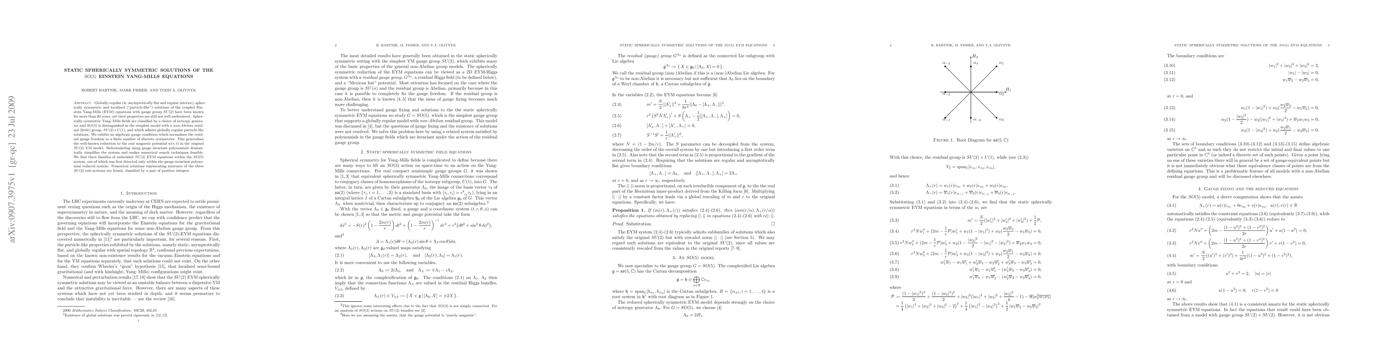 This paper explores globally regular, spherically symmetric solutions of the SO(5) Einstein Yang-Mills equations, identifying three families of embedded SU(2) EYM equations within the SO(5) system. The authors normalize residual gauge freedom using an algebraic gauge condition, simplifying the system and enabling numerical solutions.