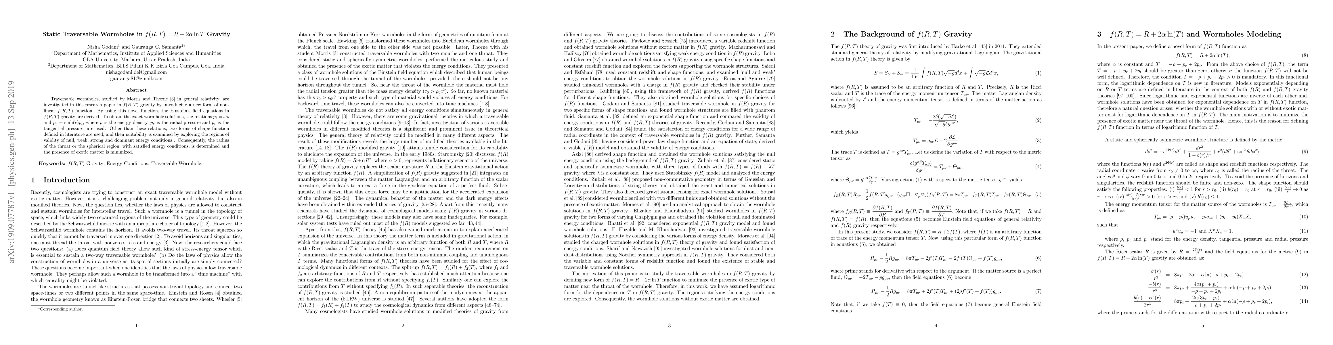 This paper explores traversable wormholes in $f(R,T)=R+2\alpha \ln T$ gravity, deriving the Einstein field equations and obtaining exact solutions under specified relations. It examines the validity of different shape functions against energy conditions to minimize exotic matter presence.