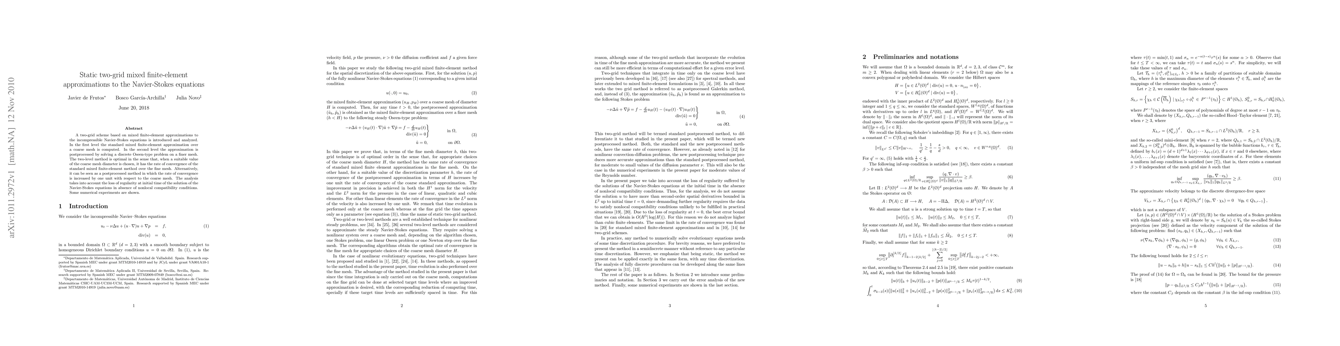 A two-grid scheme based on mixed finite-element approximations to the incompressible Navier-Stokes equations is introduced and analyzed. In the first level the standard mixed finite-element approximation over a coarse mesh is computed. In the second level the approximation is postprocessed by solving a discrete Oseen-type problem on a finer mesh. The two-level method is optimal in the sense that, when a suitable value of the coarse mesh diameter is chosen, it has the rate of convergence of the standard mixed finite-element method over the fine mesh. Alternatively, it can be seen as a postprocessed method in which the rate of convergence is increased by one unit with respect to the coarse mesh. The analysis takes into account the loss of regularity at initial time of the solution of the Navier-Stokes equations in absence of nonlocal compatibility conditions. Some numerical experiments are shown.