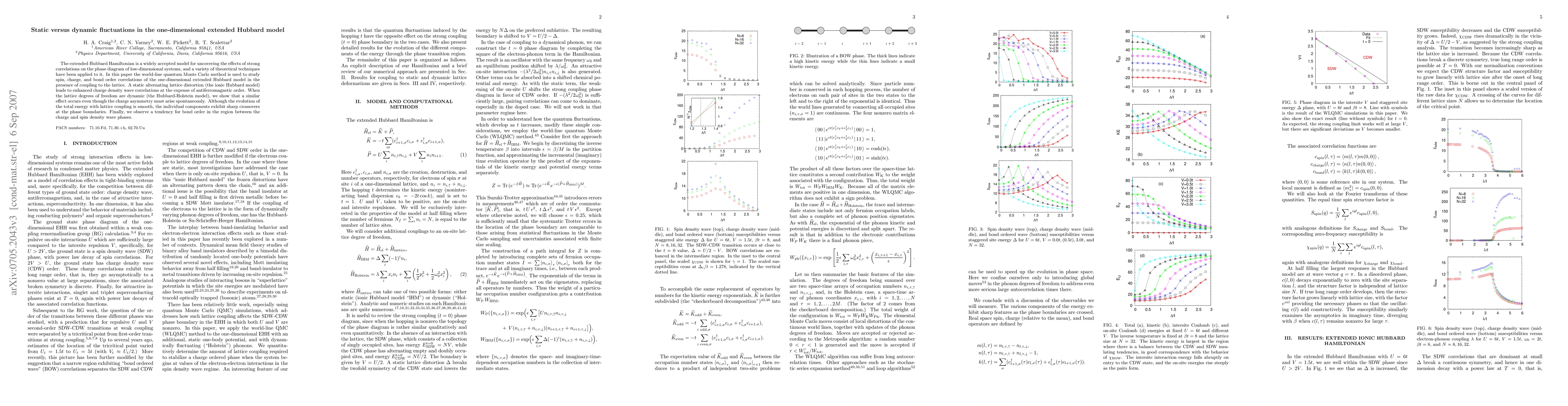 This research employs the world-line quantum Monte Carlo method to investigate correlations in the one-dimensional extended Hubbard model, showing that static lattice distortions enhance charge density wave correlations while diminishing antiferromagnetic order, and similar effects occur with dynamic lattice coupling despite spontaneous charge asymmetry.
