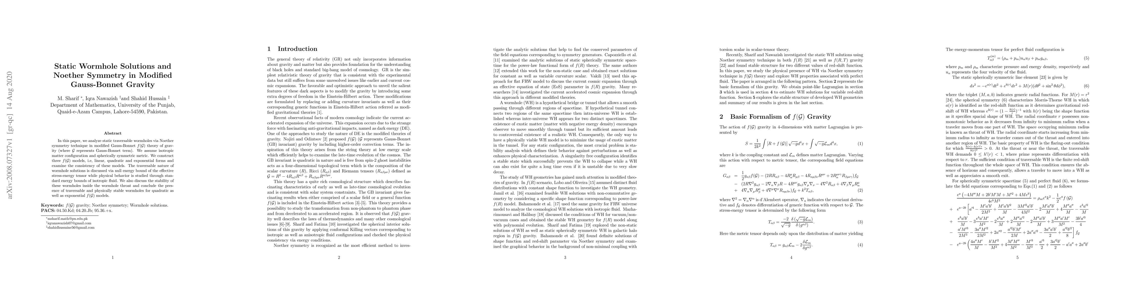 This paper investigates static traversable wormholes in modified Gauss-Bonnet gravity using Noether symmetry technique. It constructs three $f(\mathcal{G})$ models and finds traversable and stable wormholes for quadratic and exponential forms, confirming their consistency via energy bounds.