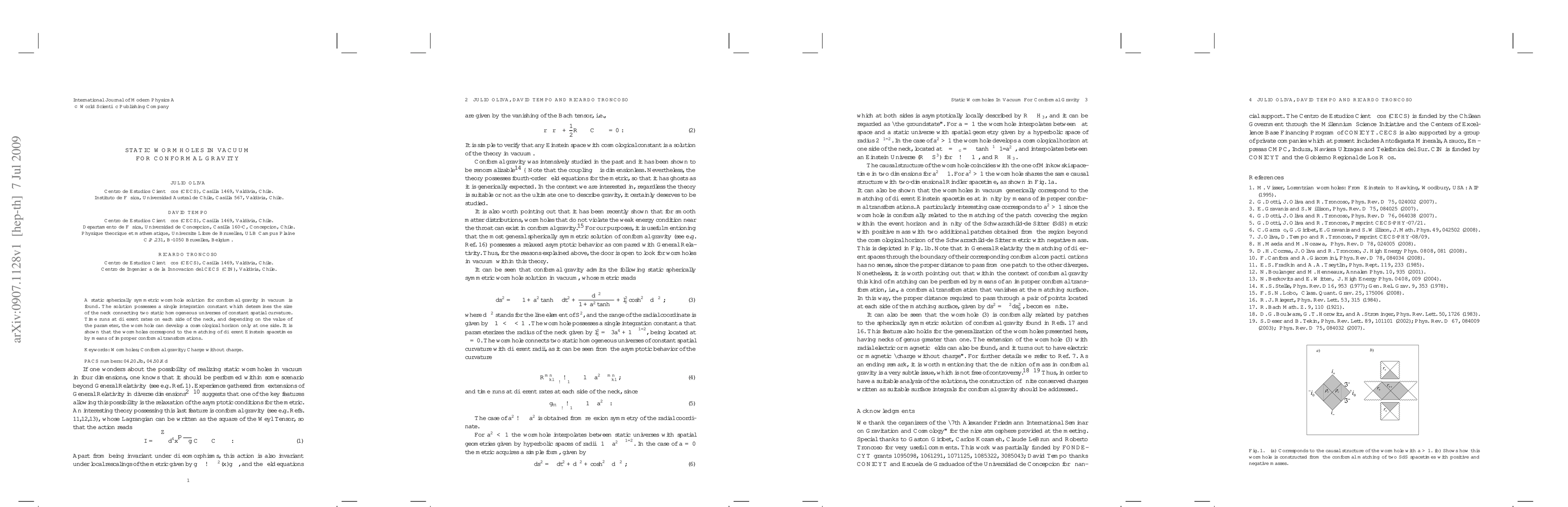 This paper presents a static wormhole solution in vacuum for conformal gravity, characterized by a single integration constant that defines the size of the wormhole's neck. The wormhole connects two homogeneous universes with different time rates and may develop a cosmological horizon on one side depending on the parameter.