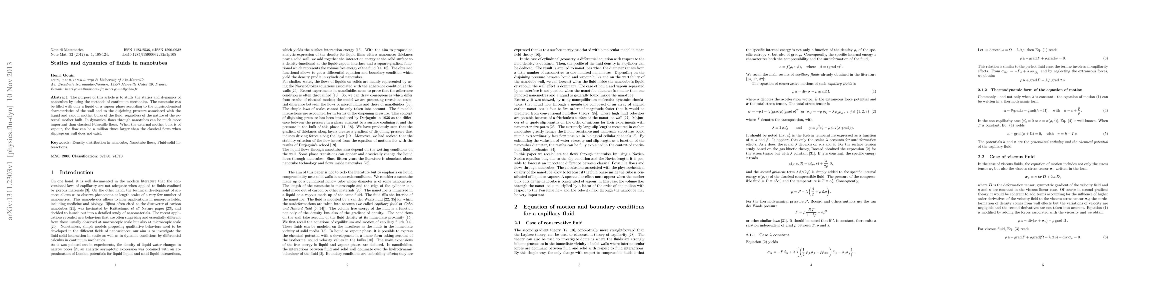 The study highlights the importance of considering dynamics and statics of fluids in nanotubes, with implications for understanding fluid behavior under various conditions.