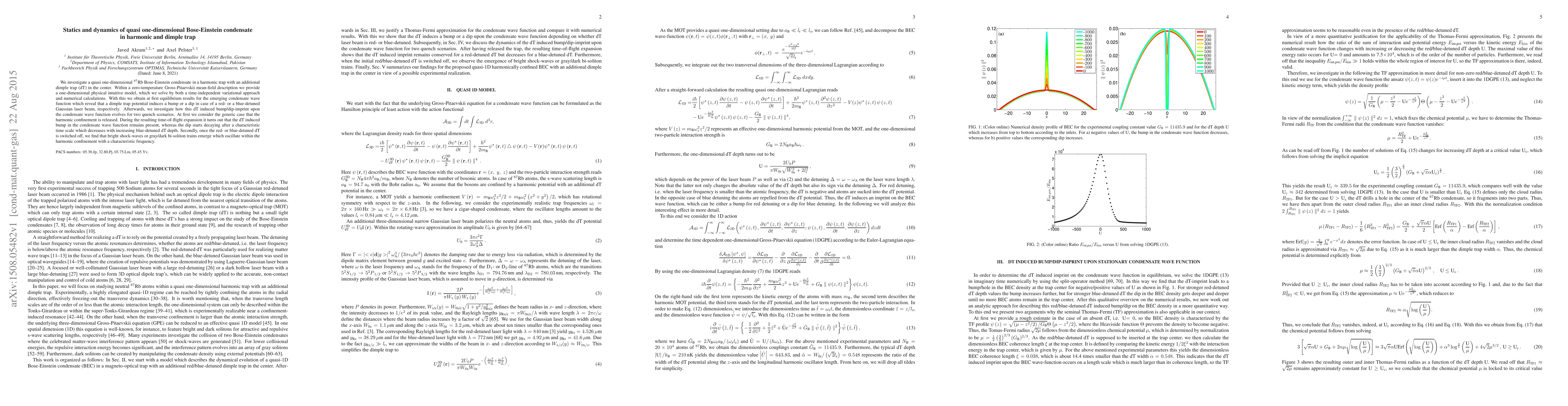 This paper studies the statics and dynamics of a quasi one-dimensional $^{87}\text{Rb}$ Bose-Einstein condensate in a harmonic trap with an additional dimple trap. The authors use a Gross-Pitaevskii mean-field model to analyze the condensate's wave function and find that dimple traps induce bumps or dips depending on the laser detuning. They also explore the evolution of these imprints during trap release and switching, revealing persistent bumps and dynamic shock-waves or soliton trains.
