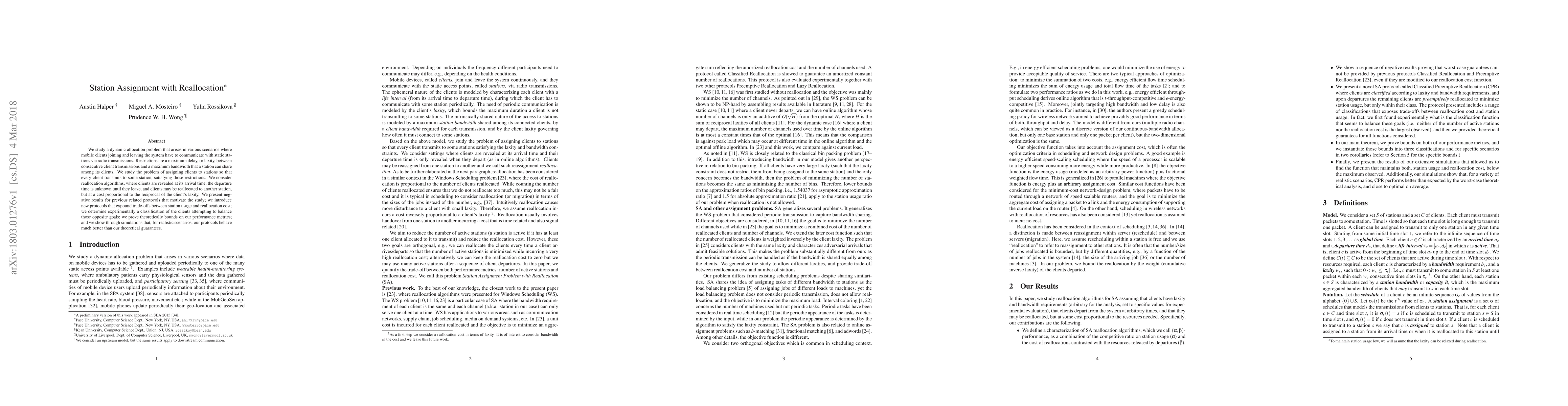 We study a dynamic allocation problem that arises in various scenarios where mobile clients joining and leaving the system have to communicate with static stations via radio transmissions. Restrictions are a maximum delay, or laxity, between consecutive client transmissions and a maximum bandwidth that a station can share among its clients. We study the problem of assigning clients to stations so that every client transmits to some station, satisfying those restrictions. We consider reallocation algorithms, where clients are revealed at its arrival time, the departure time is unknown until they leave, and clients may be reallocated to another station, but at a cost proportional to the reciprocal of the client laxity. We present negative results for previous related protocols that motivate the study; we introduce new protocols that expound trade-offs between station usage and reallocation cost; we determine experimentally a classification of the clients attempting to balance those opposite goals; we prove theoretically bounds on our performance metrics; and we show through simulations that, for realistic scenarios, our protocols behave much better than our theoretical guarantees.