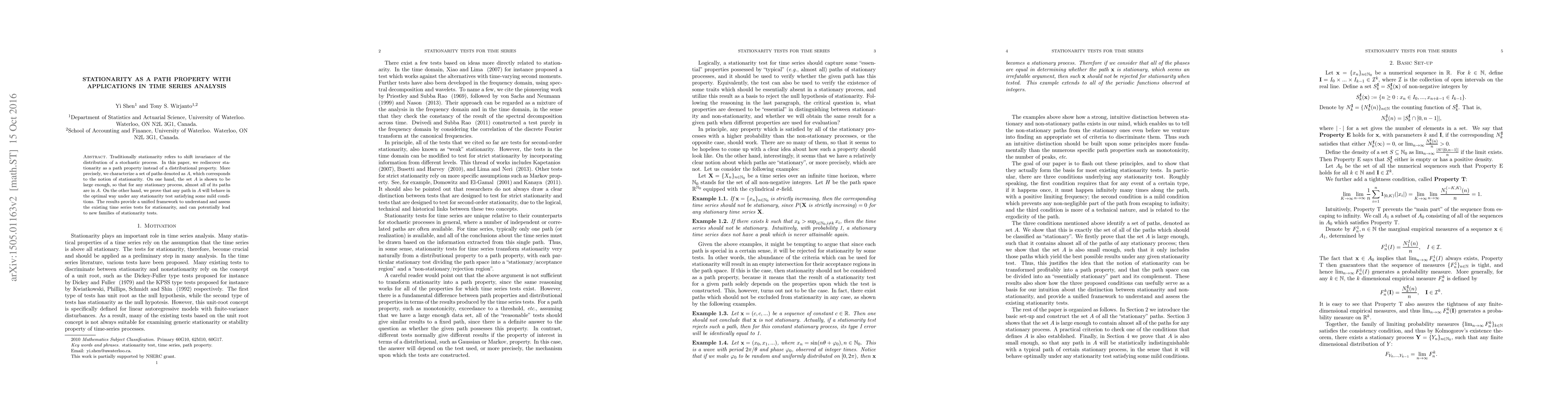 Traditionally stationarity refers to shift invariance of the distribution of a stochastic process. In this paper, we rediscover stationarity as a path property instead of a distributional property. More precisely, we characterize a set of paths denoted as $A$, which corresponds to the notion of stationarity. On one hand, the set $A$ is shown to be large enough, so that for any stationary process, almost all of its paths are in $A$. On the other hand, we prove that any path in $A$ will behave in the optimal way under any stationarity test satisfying some mild conditions. The results provide a unified framework to understand and assess the existing time series tests for stationarity, and can potentially lead to new families of stationarity tests.