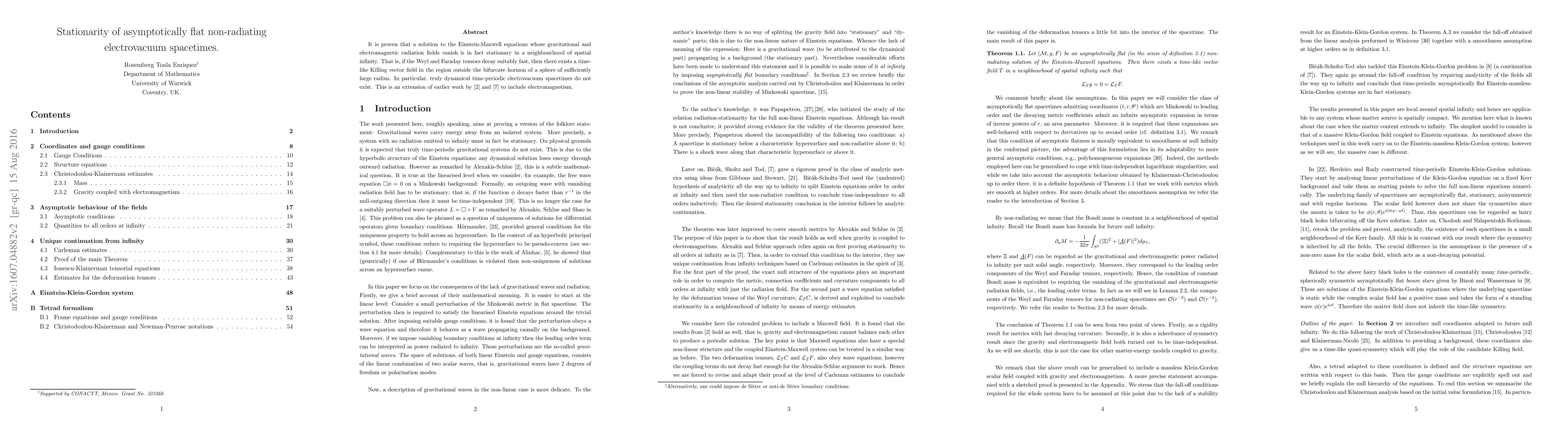This paper proves that asymptotically flat non-radiating electrovacuum spacetimes are stationary near spatial infinity, establishing the existence of a time-like Killing vector field. It concludes that truly dynamical time-periodic electrovacuum spacetimes do not exist, extending previous results to include electromagnetic fields.