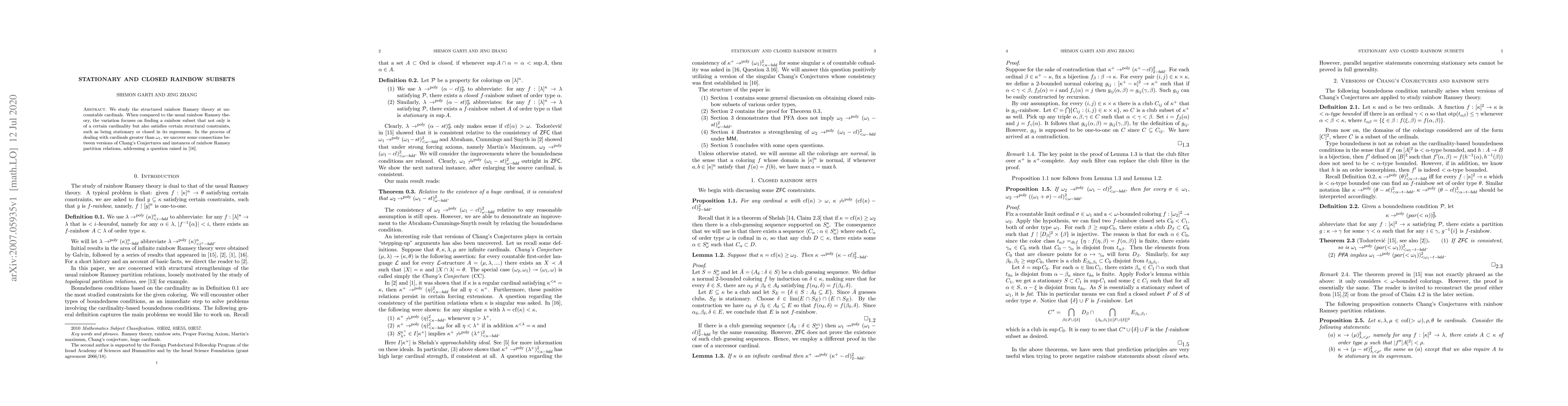 This paper explores structured rainbow Ramsey theory at uncountable cardinals, focusing on finding rainbow subsets that are stationary or closed. It reveals connections between Chang's Conjectures and rainbow Ramsey partition relations, addressing a question from \cite{zhang}.
