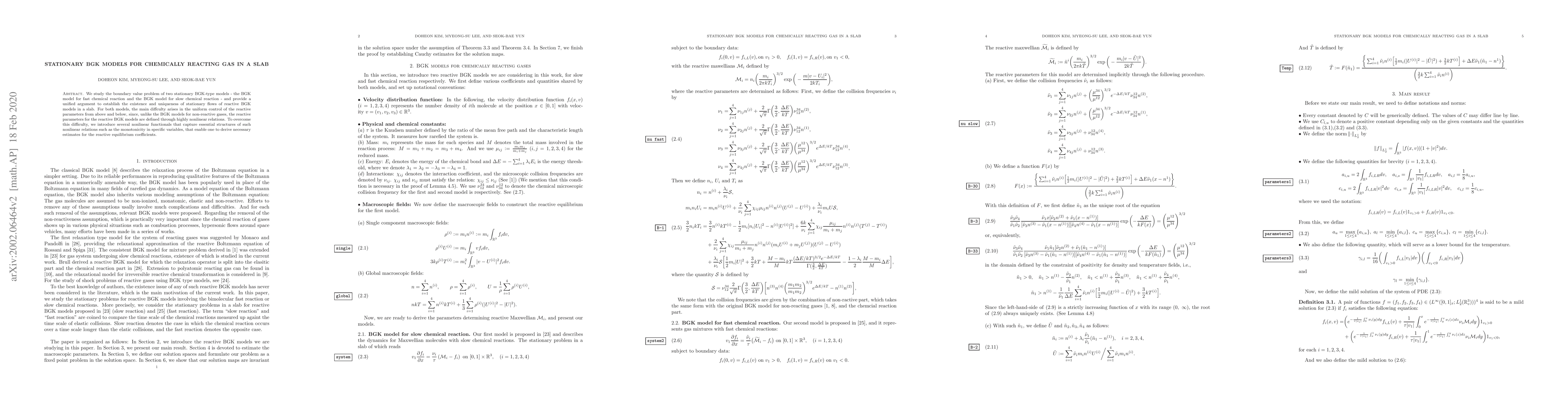 This paper investigates the boundary value problem for stationary BGK models in a slab, focusing on fast and slow chemical reactions. It establishes the existence and uniqueness of stationary flows by introducing nonlinear functionals to control reactive parameters, overcoming the challenge posed by the highly nonlinear relations in reactive models.