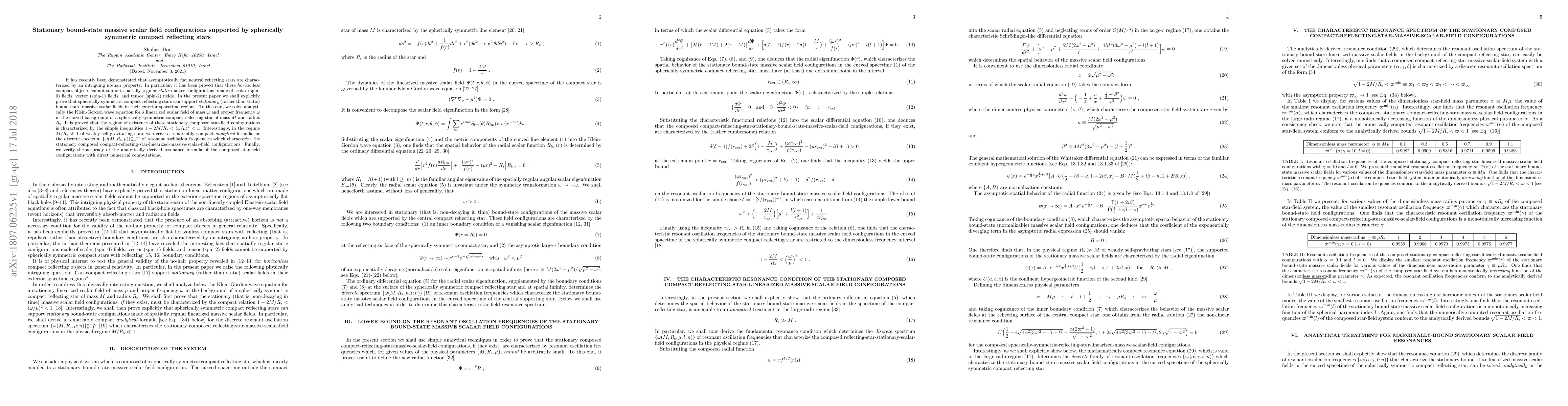 It has recently been demonstrated that asymptotically flat neutral reflecting stars are characterized by an intriguing no-hair property. In particular, it has been proved that these {\it horizonless} compact objects cannot support spatially regular {\it static} matter configurations made of scalar (spin-0) fields, vector (spin-1) fields, and tensor (spin-2) fields. In the present paper we shall explicitly prove that spherically symmetric compact reflecting stars can support {\it stationary} (rather than static) bound-state massive scalar fields in their exterior spacetime regions. To this end, we solve analytically the Klein-Gordon wave equation for a linearized scalar field of mass $\mu$ and proper frequency $\omega$ in the curved background of a spherically symmetric compact reflecting star of mass $M$ and radius $R_{\text{s}}$. It is proved that the regime of existence of these stationary composed star-field configurations is characterized by the simple inequalities $1-2M/R_{\text{s}}<(\omega/\mu)^2<1$. Interestingly, in the regime $M/R_{\text{s}}\ll1$ of weakly self-gravitating stars we derive a remarkably compact {\it analytical} formula for the discrete spectrum $\{\omega(M,R_{\text{s}},\mu)\}^{n=\infty}_{n=1}$ of resonant oscillation frequencies which characterize the stationary composed compact-reflecting-star-linearized-massive-scalar-field configurations. Finally, we verify the accuracy of the analytically derived resonance formula of the composed star-field configurations with direct numerical computations.