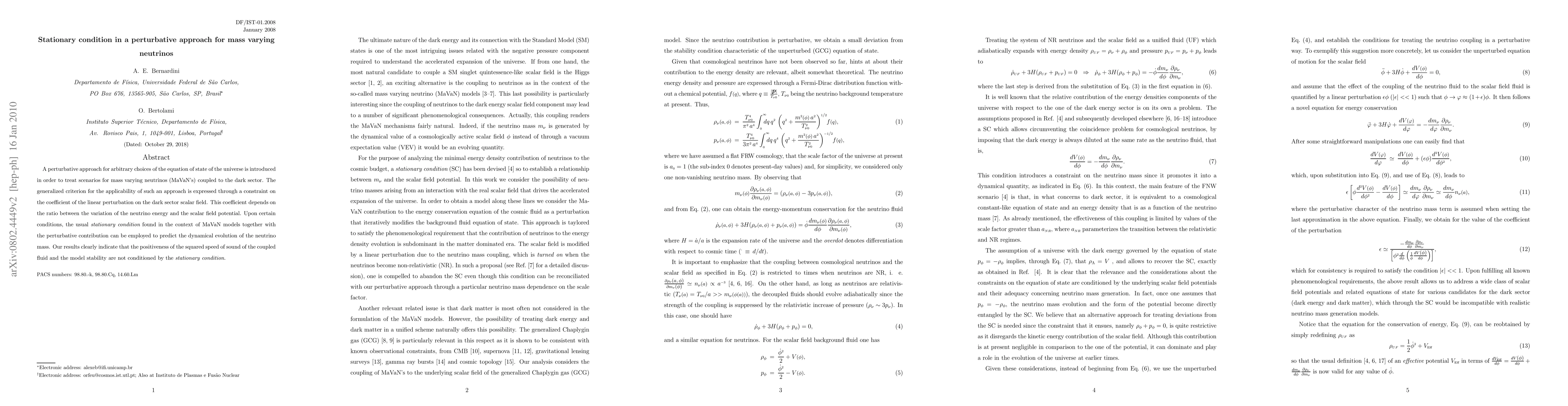 This paper introduces a perturbative approach to study mass varying neutrinos (MaVaNs) coupled to the dark sector, establishing a generalized criterion for its applicability. It finds that the usual stationary condition is not essential for predicting the dynamical evolution of neutrino mass, indicating model stability and positive squared speed of sound.