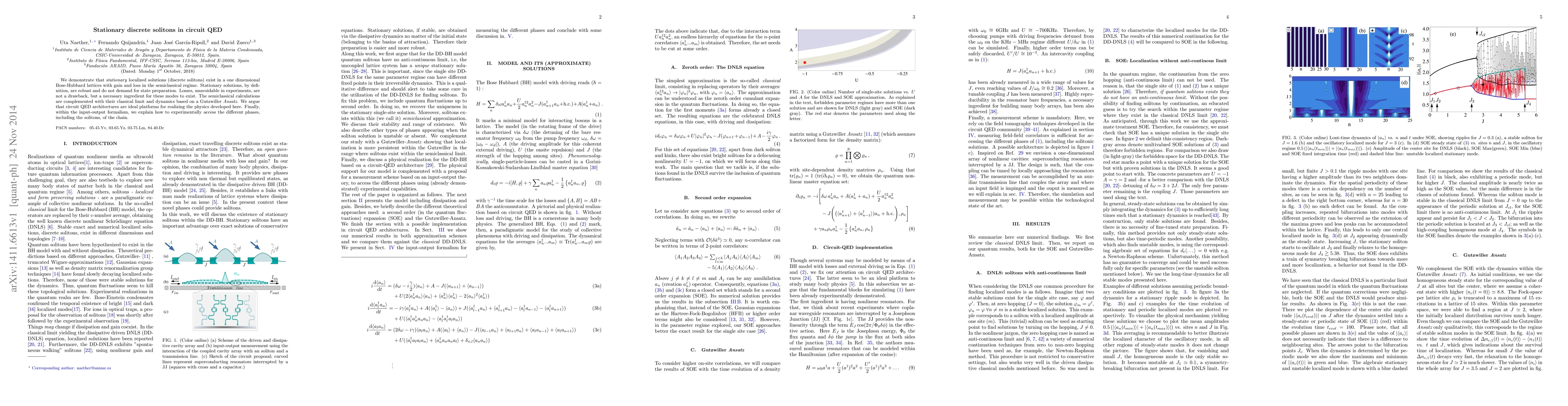The paper presents the existence of stationary localized solutions or 'discrete solitons' in a one-dimensional Bose-Hubbard lattice with gain and loss, verified through semiclassical calculations and Gutzwiller Ansatz. These solitons are robust and not dependent on precise state preparation, making them ideal for circuit QED architectures. The study also explains how to experimentally access these phases using the input-output formalism.