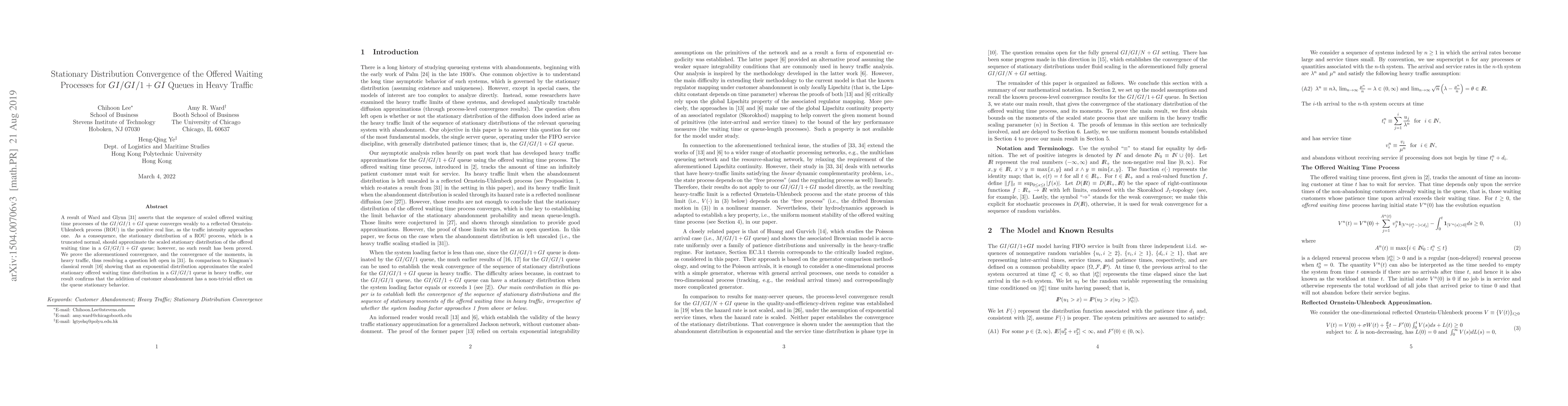 A result of Ward and Glynn (2005) asserts that the sequence of scaled offered waiting time processes of the $GI/GI/1+GI$ queue converges weakly to a reflected Ornstein-Uhlenbeck process (ROU) in the positive real line, as the traffic intensity approaches one. As a consequence, the stationary distribution of a ROU process, which is a truncated normal, should approximate the scaled stationary distribution of the offered waiting time in a $GI/GI/1+GI$ queue; however, no such result has been proved. We prove the aforementioned convergence, and the convergence of the moments, in heavy traffic, thus resolving a question left open in Ward and Glynn (2005). In comparison to Kingman's classical result in Kingman (1961) showing that an exponential distribution approximates the scaled stationary offered waiting time distribution in a $GI/GI/1$ queue in heavy traffic, our result confirms that the addition of customer abandonment has a non-trivial effect on the queue stationary behavior.