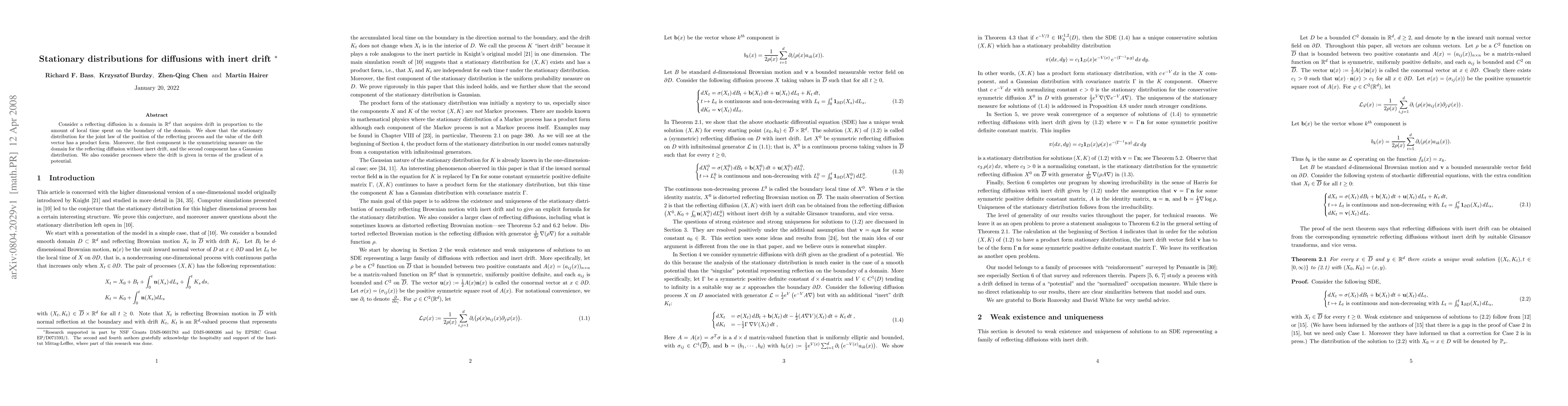 The paper presents a novel approach to characterizing the stationary distribution of diffusions with inert drift, leveraging the interplay between the diffusion process and its local time at the boundary.