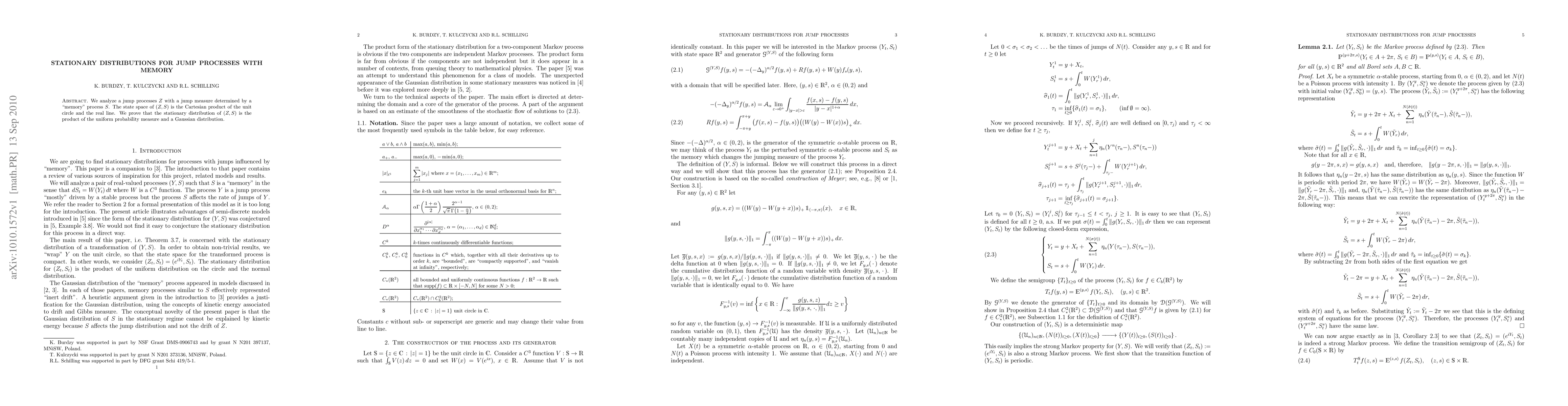 We analyze a jump processes $Z$ with a jump measure determined by a "memory" process $S$. The state space of $(Z,S)$ is the Cartesian product of the unit circle and the real line. We prove that the stationary distribution of $(Z,S)$ is the product of the uniform probability measure and a Gaussian distribution.