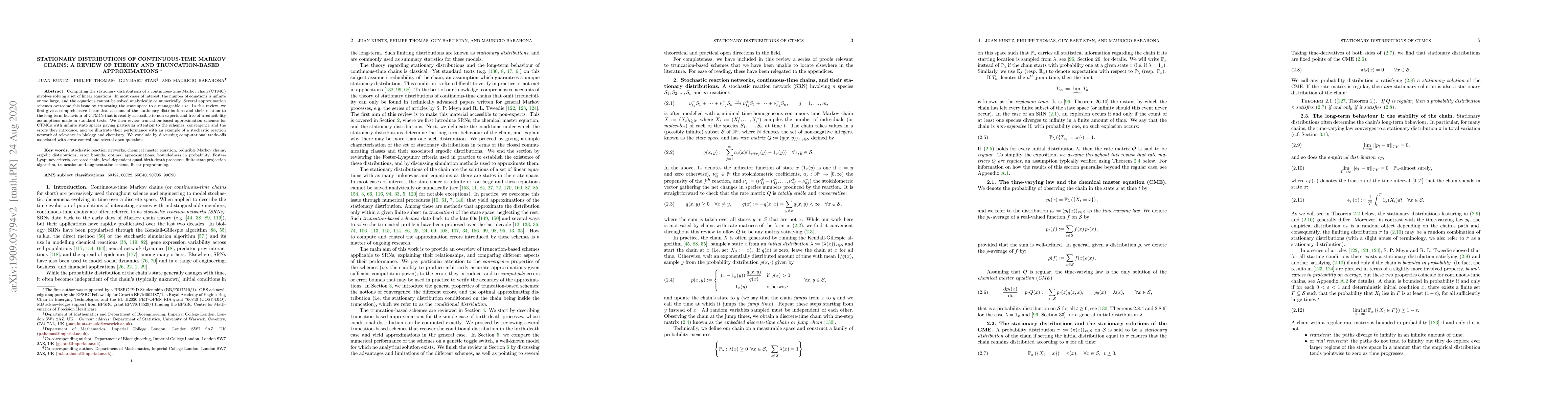 This paper reviews the theoretical foundations of stationary distributions in continuous-time Markov chains (CTMCs) and explores truncation-based approximations for handling infinite state spaces. It emphasizes convergence and error analysis of these approximations, illustrated with a biological/chemical example, and discusses computational trade-offs and open research questions.