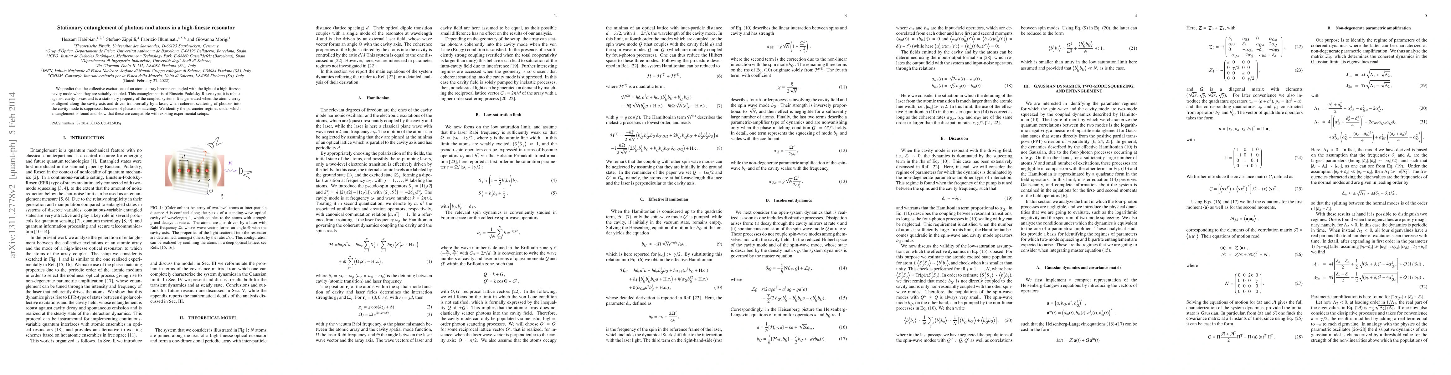 We predict that the collective excitations of an atomic array become entangled with the light of a high-finesse cavity mode when they are suitably coupled. This entanglement is of Einstein-Podolsky-Rosen type, it is robust against cavity losses and is a stationary property of the coupled system. It is generated when the atomic array is aligned along the cavity axis and driven transversally by a laser, when coherent scattering of photons into the cavity mode is suppressed because of phase-mismatching. We identify the parameter regimes under which entanglement is found and show that these are compatible with existing experimental setups.