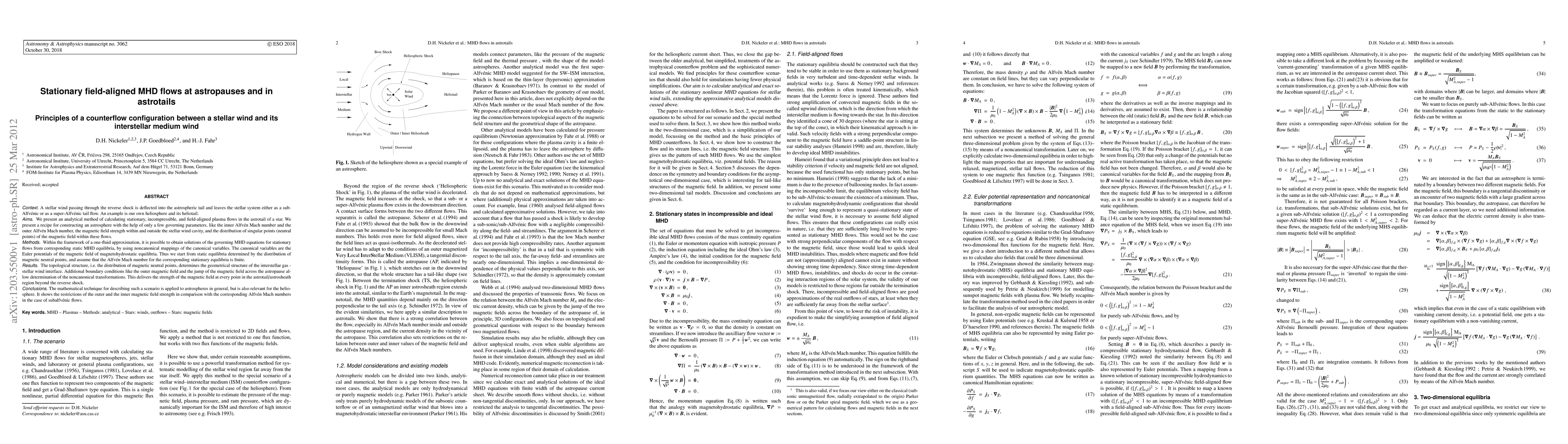 This paper presents an analytical method for calculating stationary, incompressible, and field-aligned plasma flows in astrotails using magnetohydrodynamic (MHD) principles. It derives solutions from static MHD equilibria through noncanonical mappings, focusing on the interaction between stellar winds and interstellar medium winds, exemplified by the heliosphere.