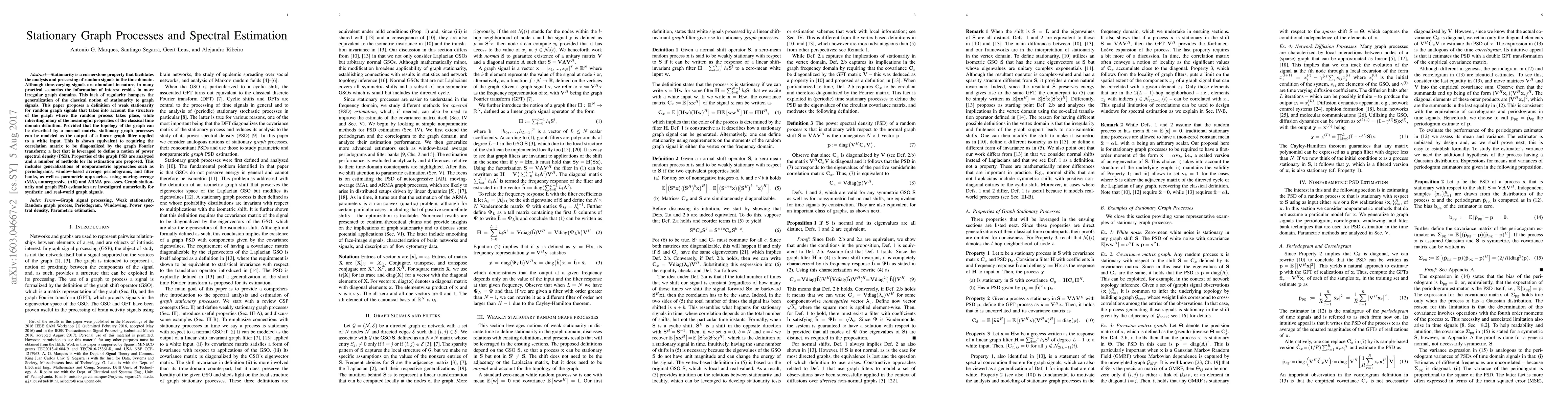 This paper introduces a new definition of weak stationarity for graph signals, requiring correlation matrices to be diagonalized by the graph Fourier transform. It also proposes methods for estimating the power spectral density of graph signals using nonparametric and parametric approaches.