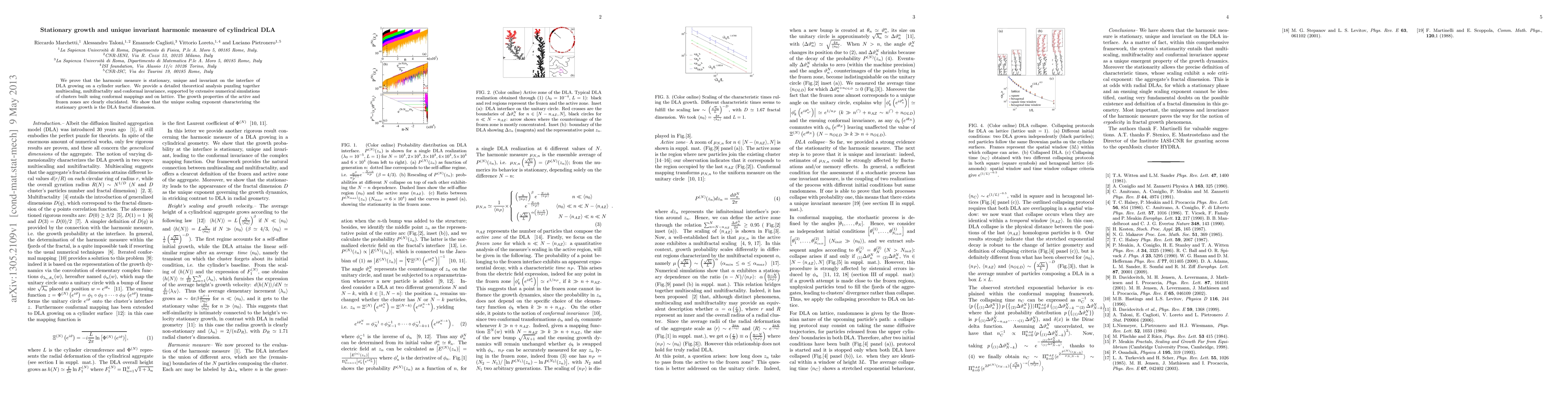 This paper demonstrates that the harmonic measure on the interface of a cylindrical diffusion-limited aggregation (DLA) is stationary, unique, and invariant. The study combines theoretical analysis with numerical simulations to elucidate the growth properties and scaling behavior of the DLA clusters, revealing that the fractal dimension of DLA characterizes the stationary growth.