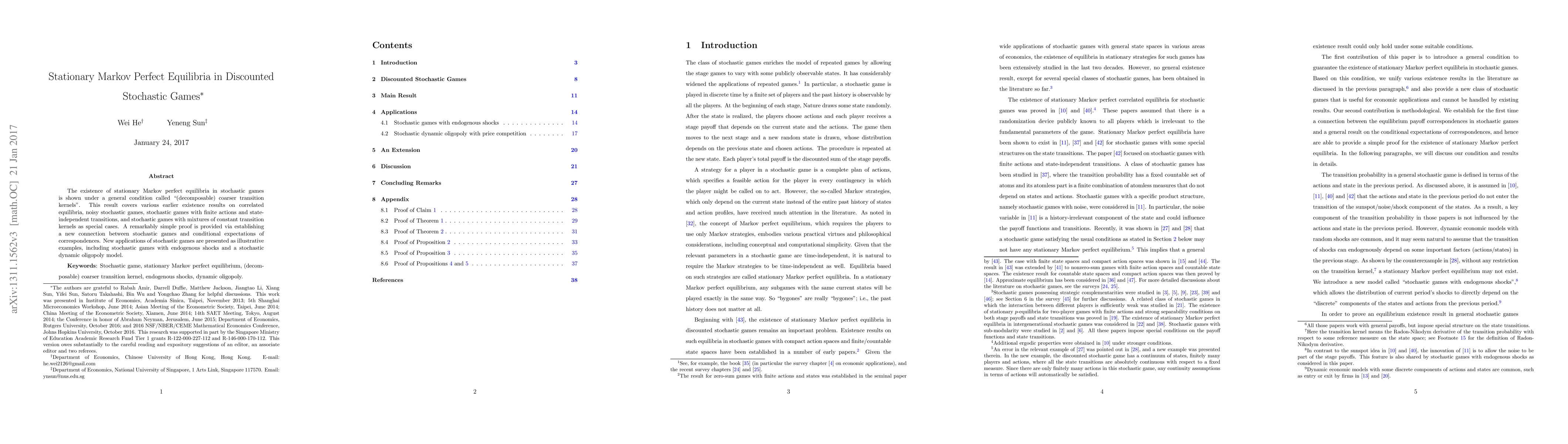 This paper demonstrates the existence of stationary Markov perfect equilibria in discounted stochastic games under the condition of "(decomposable) coarser transition kernels," encompassing various prior results. A novel proof technique links stochastic games to conditional expectations, with new applications in models featuring endogenous shocks and dynamic oligopoly.