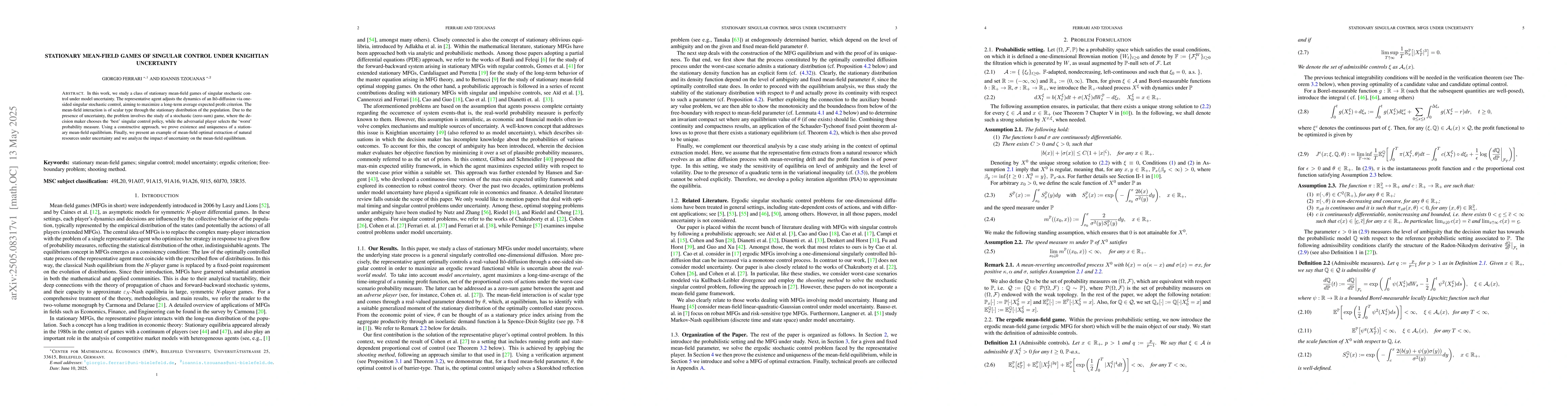 The paper presents a novel proof of existence and uniqueness of a stationary mean-field equilibrium for singular control problems under model uncertainty, using a constructive approach.