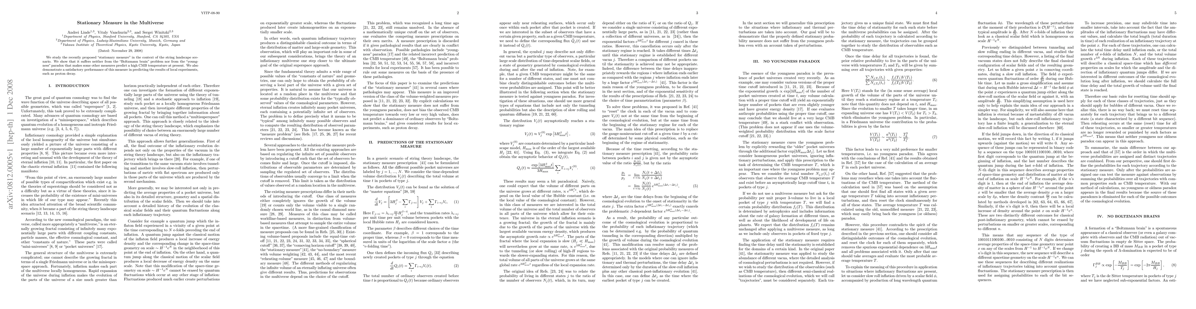 We study the recently proposed "stationary measure" in the context of the string landscape scenario. We show that it suffers neither from the "Boltzmann brain" problem nor from the "youngness" paradox that makes some other measures predict a high CMB temperature at present. We also demonstrate a satisfactory performance of this measure in predicting the results of local experiments, such as proton decay.