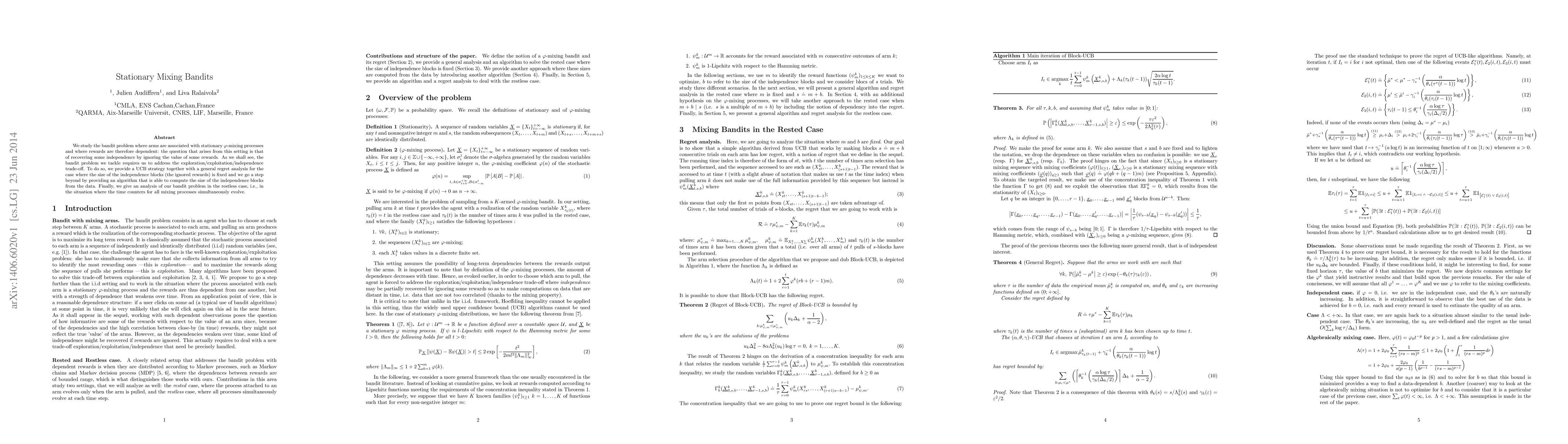 We study the bandit problem where arms are associated with stationary phi-mixing processes and where rewards are therefore dependent: the question that arises from this setting is that of recovering some independence by ignoring the value of some rewards. As we shall see, the bandit problem we tackle requires us to address the exploration/exploitation/independence trade-off. To do so, we provide a UCB strategy together with a general regret analysis for the case where the size of the independence blocks (the ignored rewards) is fixed and we go a step beyond by providing an algorithm that is able to compute the size of the independence blocks from the data. Finally, we give an analysis of our bandit problem in the restless case, i.e., in the situation where the time counters for all mixing processes simultaneously evolve.