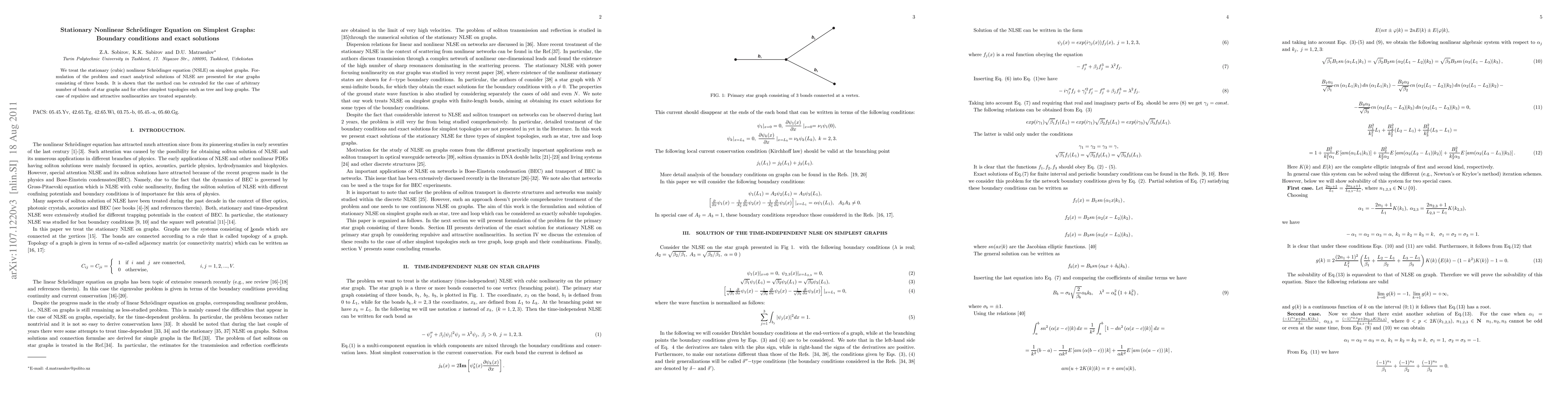 This paper presents exact analytical solutions for the stationary nonlinear Schrödinger equation on simple graph structures, including star, tree, and loop graphs. It explores both repulsive and attractive nonlinearities, demonstrating the method's applicability across various graph topologies.