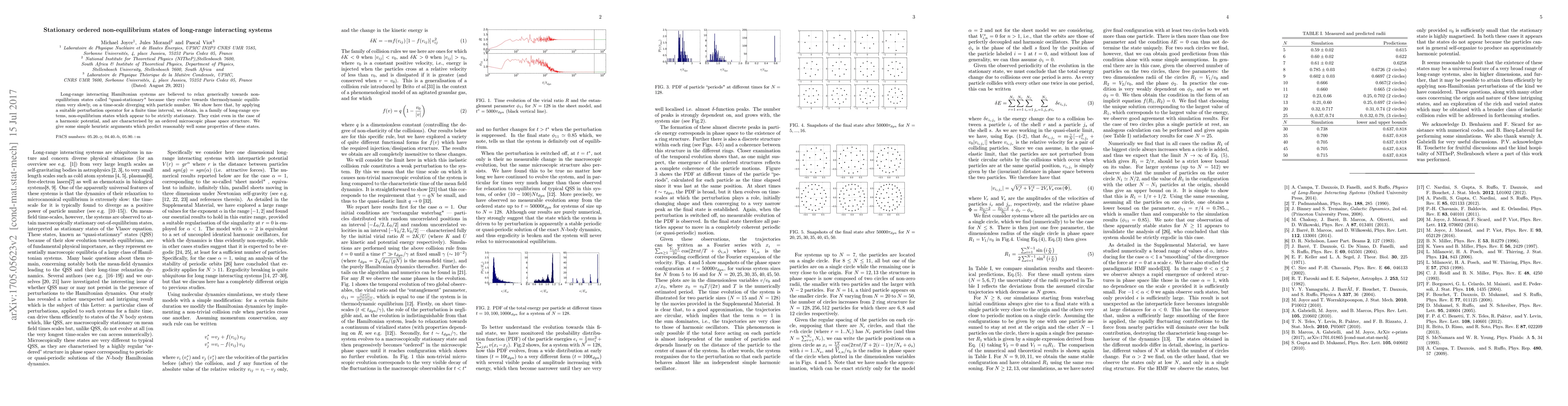 This paper demonstrates that long-range interacting systems can be perturbed to achieve strictly stationary non-equilibrium states, characterized by an ordered microscopic phase space structure, even in harmonic potentials. The authors provide heuristic arguments to predict properties of these quasi-stationary states.