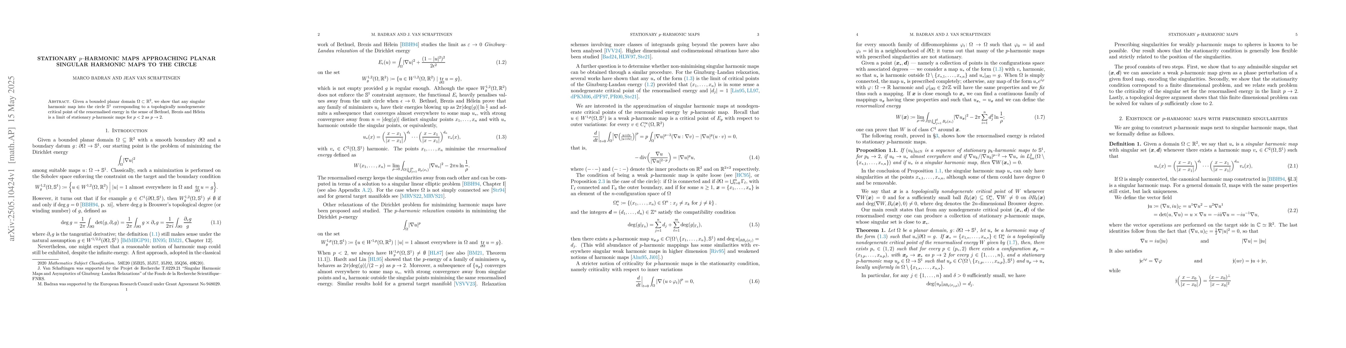 This research paper shows that as the dimension of a $p$-harmonic map approaches 2, maps to a circle can be approximated by stationary $p$-harmonic maps for $p < 2$, implying a connection between these maps and planar singular harmonic maps.