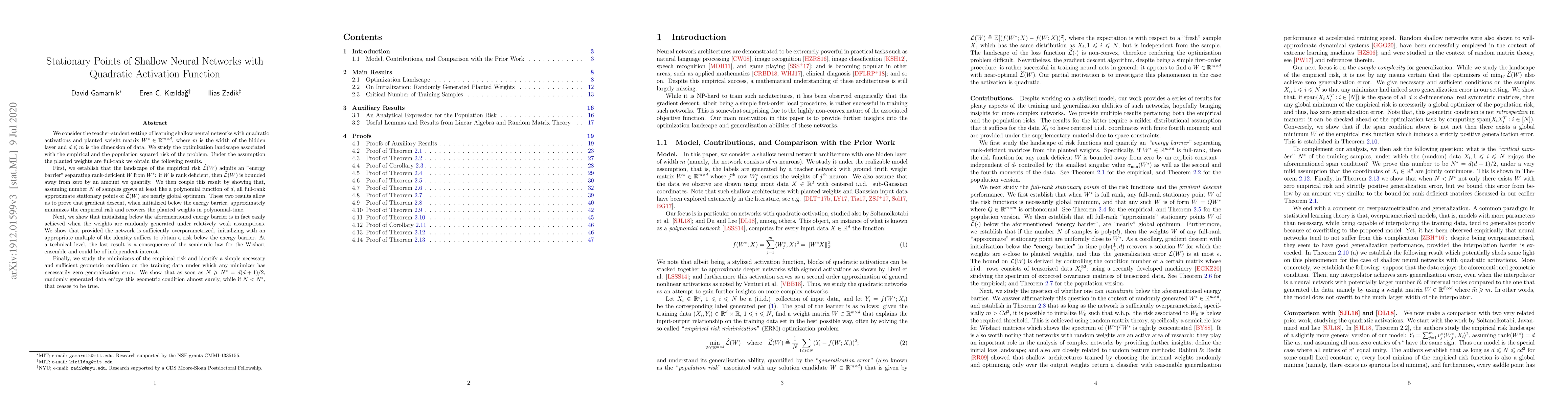 establish that the landscape of the empirical risk admits an "energy barrier"