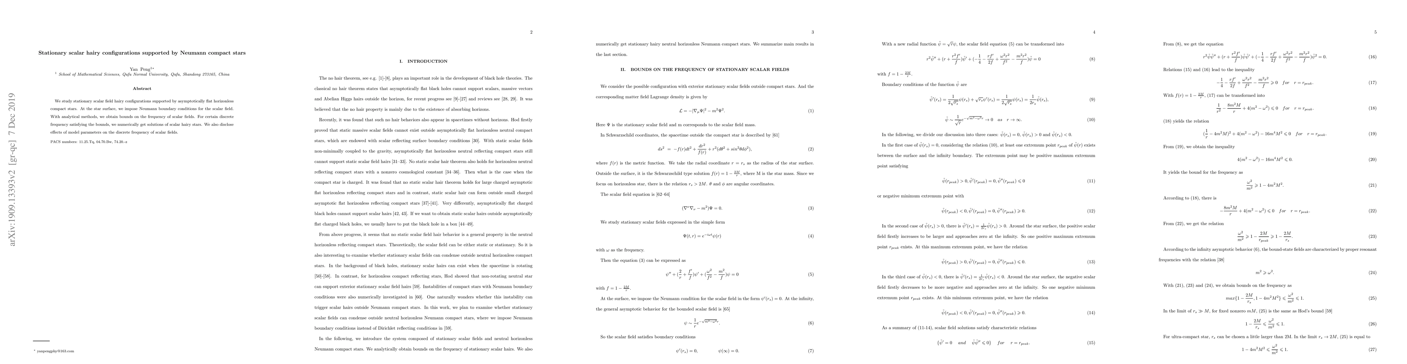 This paper investigates stationary scalar field configurations around horizonless compact stars with Neumann boundary conditions. Analytical methods establish frequency bounds, and numerical solutions for specific frequencies reveal the impact of model parameters on scalar field frequencies.