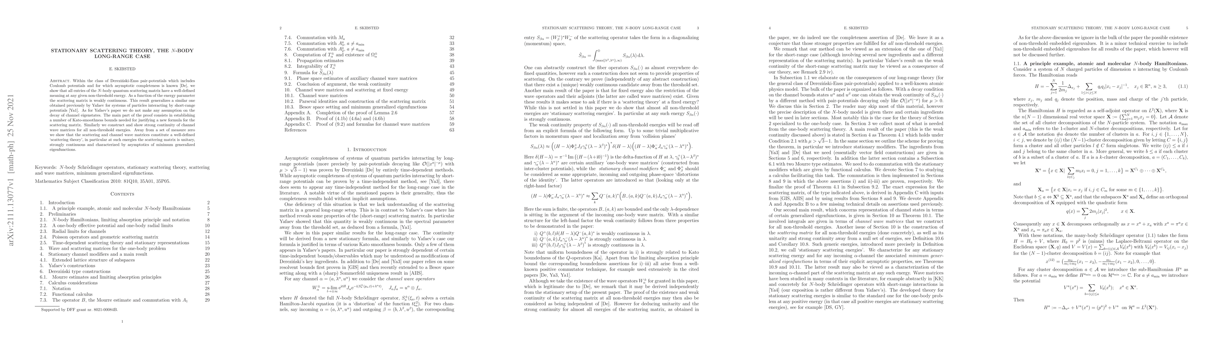 Researchers have shown that the scattering matrix for N-body quantum systems with long-range pair-potentials has a well-defined meaning at any non-threshold energy, generalizing a previous result for short-range potentials.