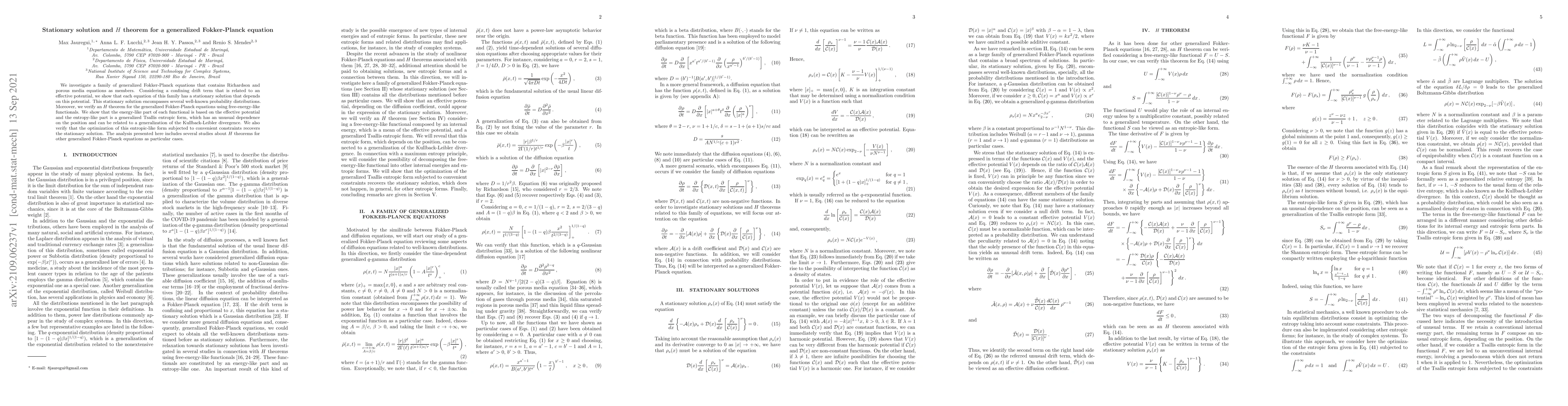 This paper explores a generalized Fokker-Planck equation family, demonstrating its stationary solutions linked to an effective potential and verifying an $H$ theorem using free-energy-like functionals. The analysis reveals an energy-like part based on the potential and a generalized Tsallis entropy dependent on position, which optimizes to recover the stationary solution.