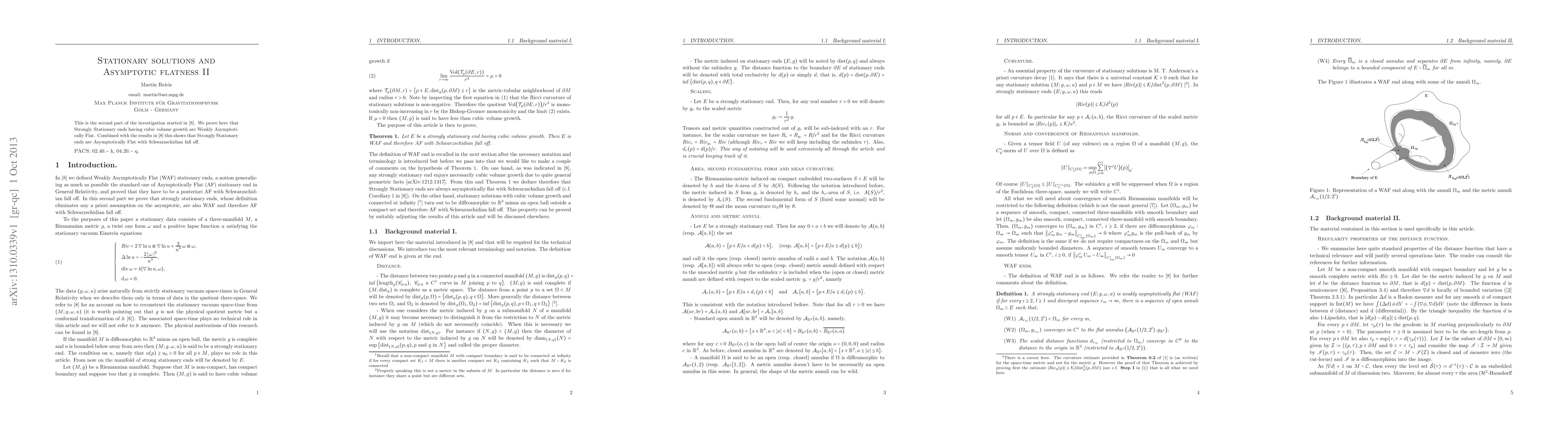 This is the second part of the investigation started in [Stationary solutions and asymptotic flatness I]. We prove here that Strongly Stationary ends having cubic volume growth are Weakly Asymptotically Flat. Combined with the results of the previous paper this shows that Strongly Stationary ends are Asymptotically Flat with Schwarzschidian fall off.