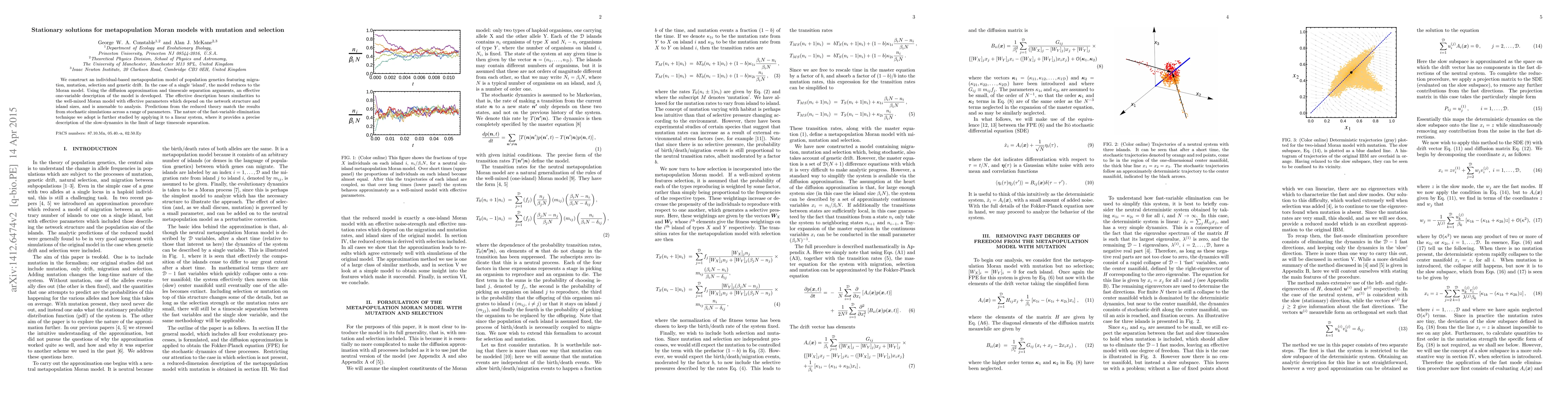 We construct an individual-based metapopulation model of population genetics featuring migration, mutation, selection and genetic drift. In the case of a single `island', the model reduces to the Moran model. Using the diffusion approximation and timescale separation arguments, an effective one-variable description of the model is developed. The effective description bears similarities to the well-mixed Moran model with effective parameters which depend on the network structure and island sizes, and is amenable to analysis. Predictions from the reduced theory match the results from stochastic simulations across a range of parameters. The nature of the fast-variable elimination technique we adopt is further studied by applying it to a linear system, where it provides a precise description of the slow-dynamics in the limit of large timescale separation.