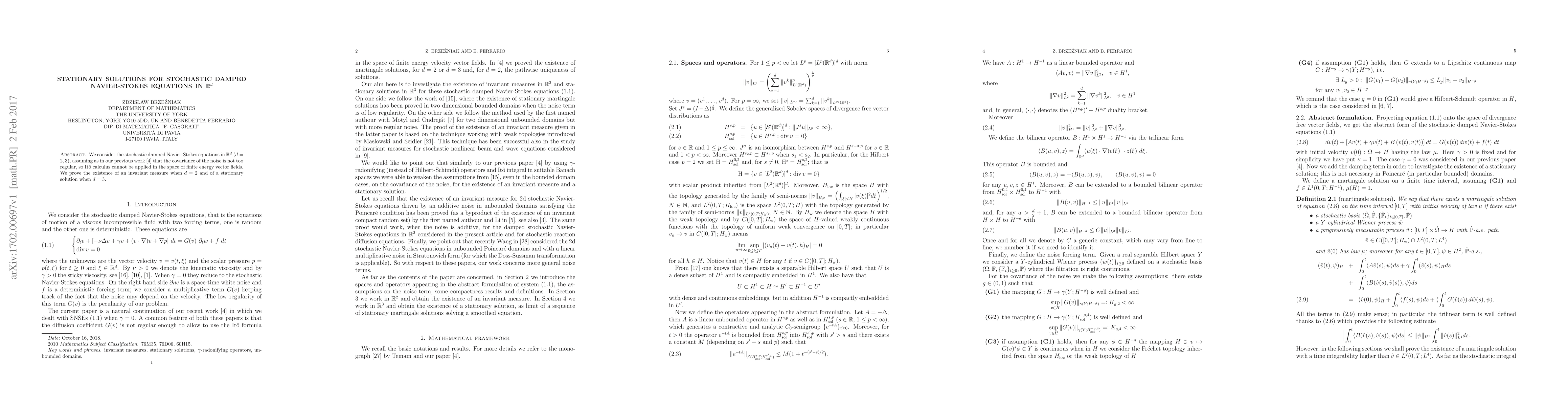 Researchers proved the existence of an invariant measure for 2D Navier-Stokes equations and a stationary solution for 3D equations under stochastic damping.