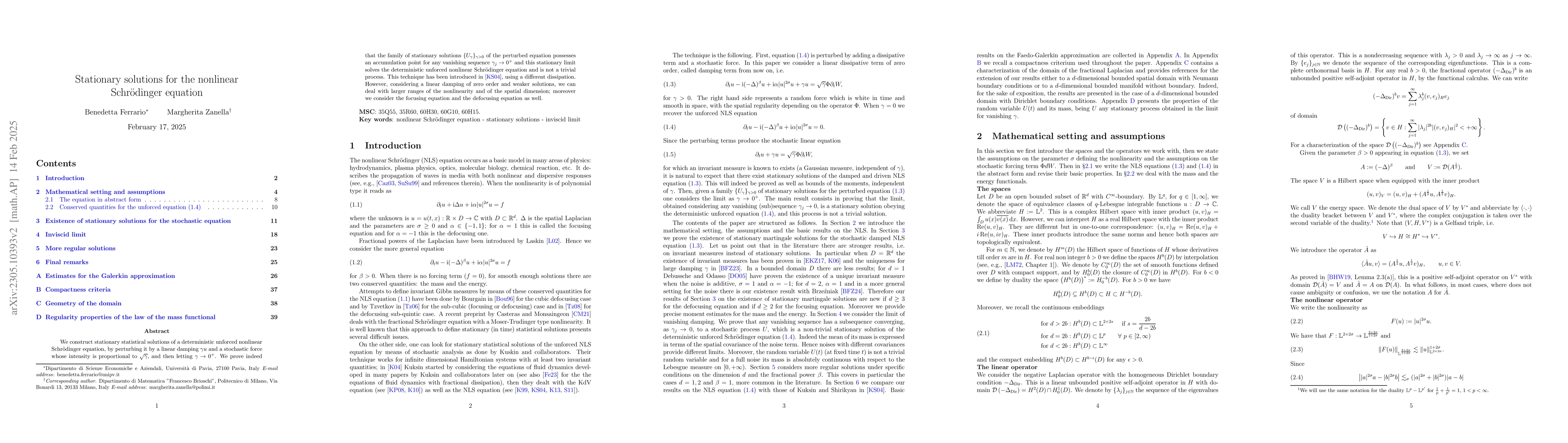 This paper constructs stationary solutions for the deterministic unforced nonlinear Schrödinger equation by perturbing it with a linear damping and a stochastic force, then taking the limit as the damping approaches zero. The resulting stationary solution is non-trivial and solves the original equation.