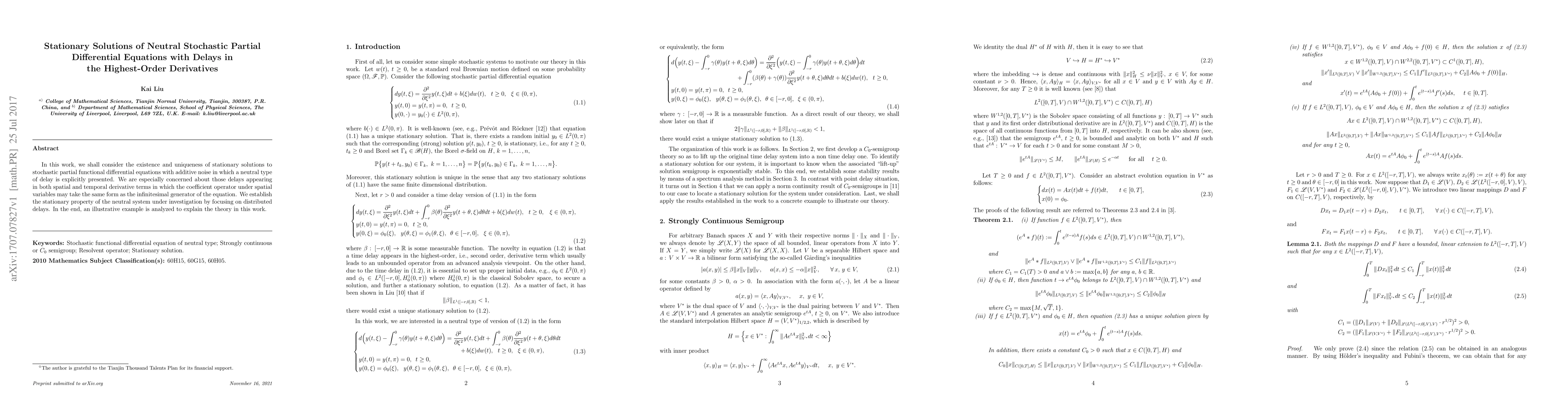 This paper investigates the existence and uniqueness of stationary solutions for neutral stochastic partial differential equations with delays in the highest-order derivatives. It focuses on delays in both spatial and temporal derivative terms and establishes the stationary property by considering distributed delays, concluding with an illustrative example.