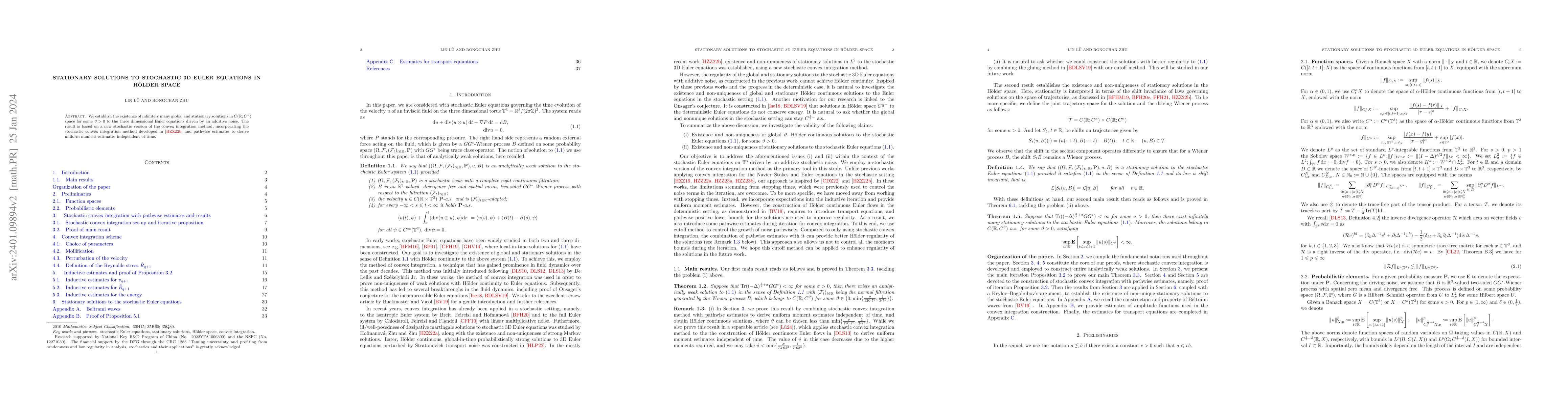This paper proves the existence of infinitely many global and stationary solutions to the stochastic 3D Euler equations in H\"older space using a novel stochastic convex integration method, ensuring uniform moment estimates independent of time.