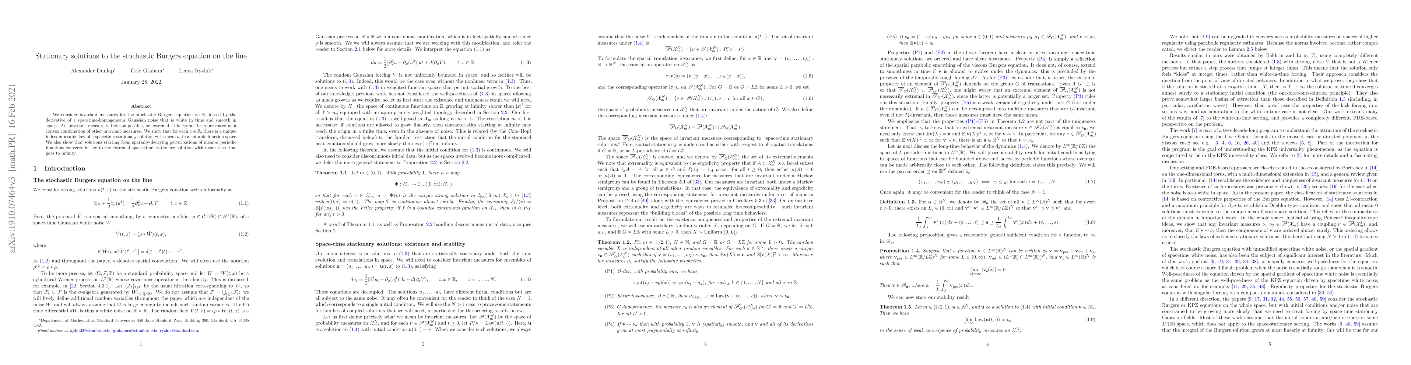 This paper investigates invariant measures for the stochastic Burgers equation on the real line, driven by a Gaussian noise. It establishes the existence of a unique extremal, indecomposable invariant measure for each mean value, and demonstrates convergence of solutions to this measure from initial spatially-decaying perturbations of periodic functions.