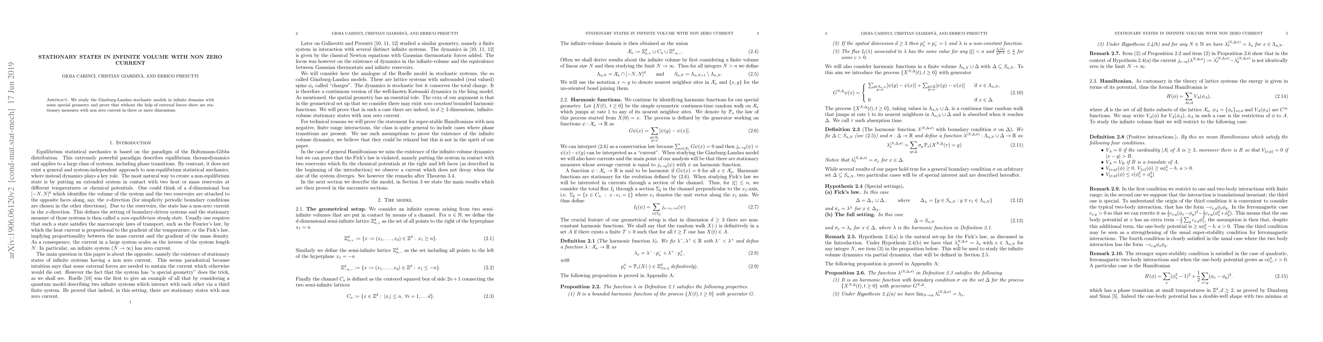 We study the Ginzburg-Landau stochastic models in infinite domains with some special geometry and prove that without the help of external forces there are stationary measures with non zero current in three or more dimensions.